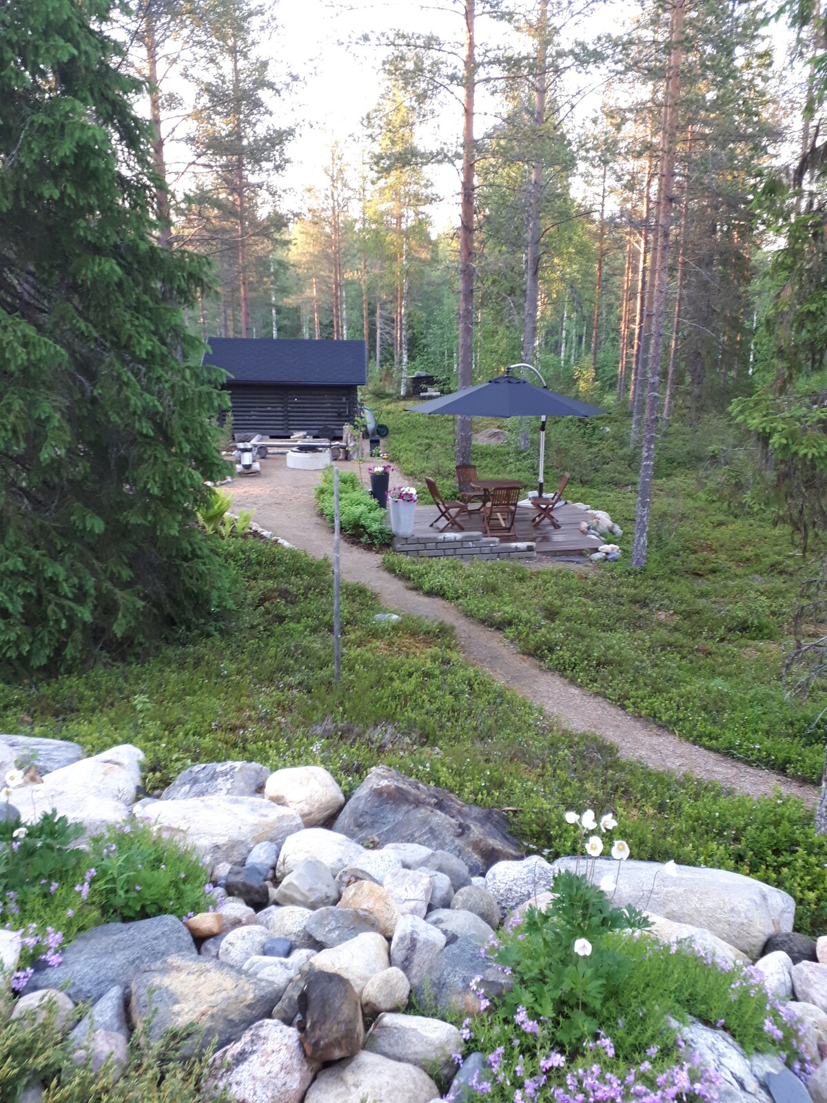 Laponia está llena, ¡ven a Kainuu! En una parcela soleada y boscosa en Kajaani, una acogedora cabaña para 6 personas con una maravillosa sauna de playa calentada con leña. El sol brilla en la playa de la cabaña hasta bien entrada la noche. La sauna de la playa está situada justo al lado del agua y la propia cabaña está un poco más arriba en la parcela. Dentro de la cabaña hay agua corriente, un inodoro y una ducha que aportan un poco de lujo a la estancia. La cabaña está equipada con una gran terraza cubierta, con vistas a través del bosque hasta el lago.