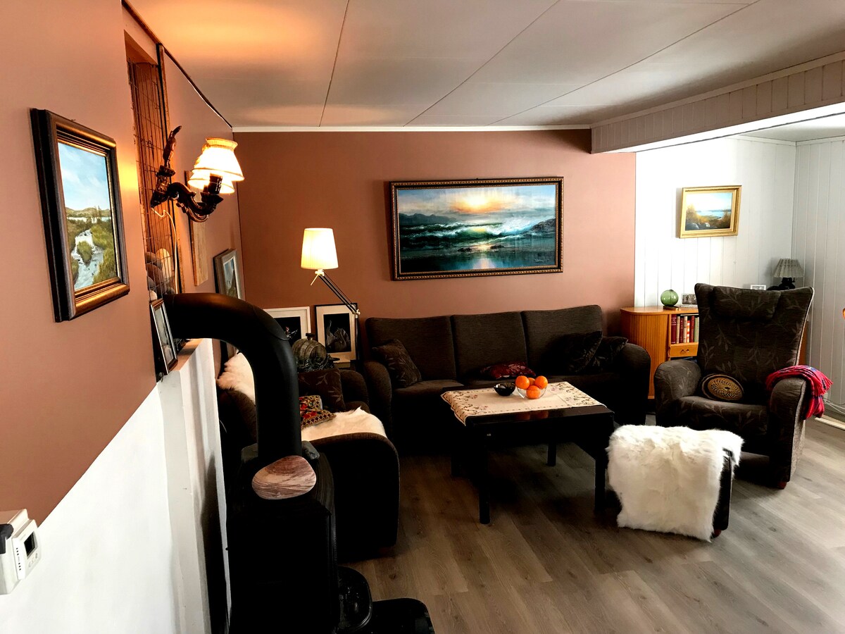 Bienvenido a nuestro moderno apartamento, ideal para una escapada relajante en el hermoso Båtsfjord. El apartamento tiene 2 dormitorios, una sala de estar, una cocina totalmente equipada y un gran baño. El apartamento tiene calefacción por suelo radiante. El baño tiene una lavadora y secadora. Hay un televisor inteligente y Wi-Fi gratuito en todas las habitaciones. El apartamento también tiene una entrada privada, estacionamiento privado y un hermoso jardín. Ya sea que estés aquí para explorar o simplemente buscando un retiro tranquilo, nuestro apartamento es la opción perfecta.