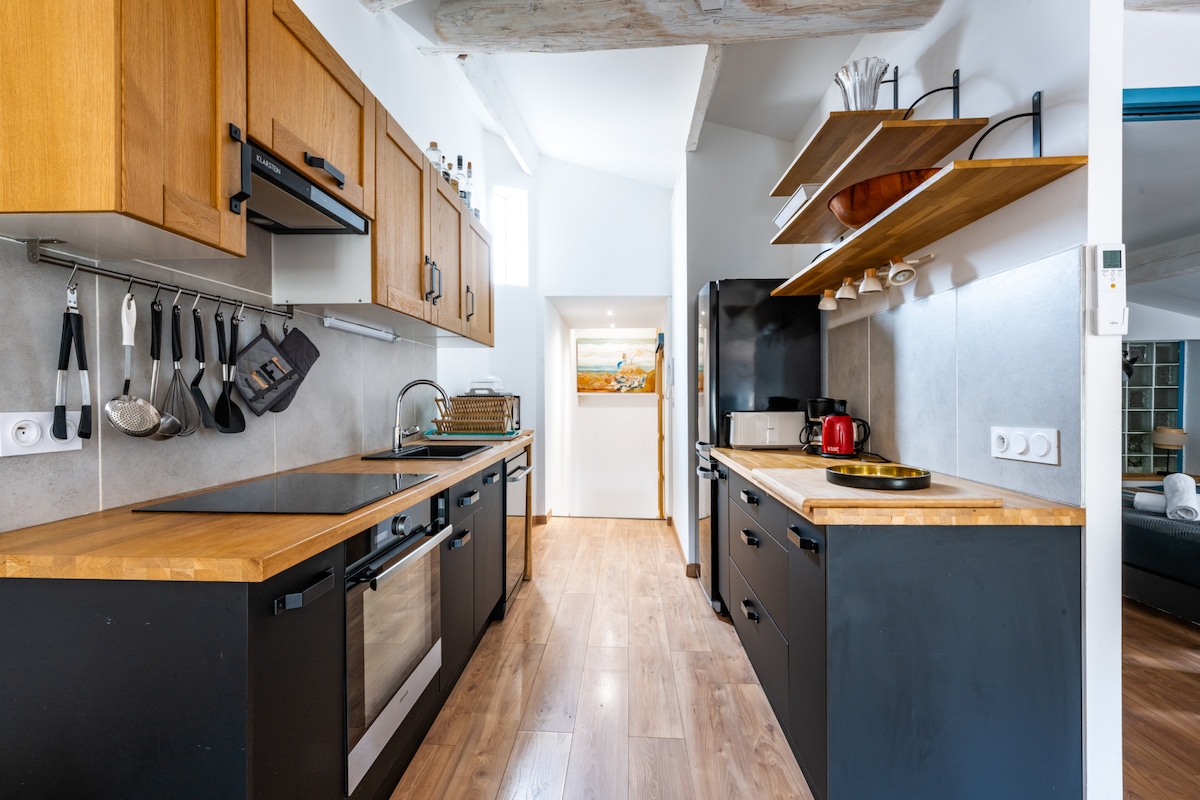 Relájese en este alojamiento tranquilo y elegante situado en pleno centro de Vaison la Romaine El apartamento con aire acondicionado está totalmente reformado Una cama alta y un sofá cama permiten alojar de 2 a 4 personas. La cocina está equipada: Placa de inducción Lavavajillas Microondas Hervidor de agua Nespresso TV con canales de la caja de internet. Horarios de llegada y salida flexibles. Podrá aparcar de forma gratuita a unos pasos Limpieza a cargo del ocupante o por un suplemento