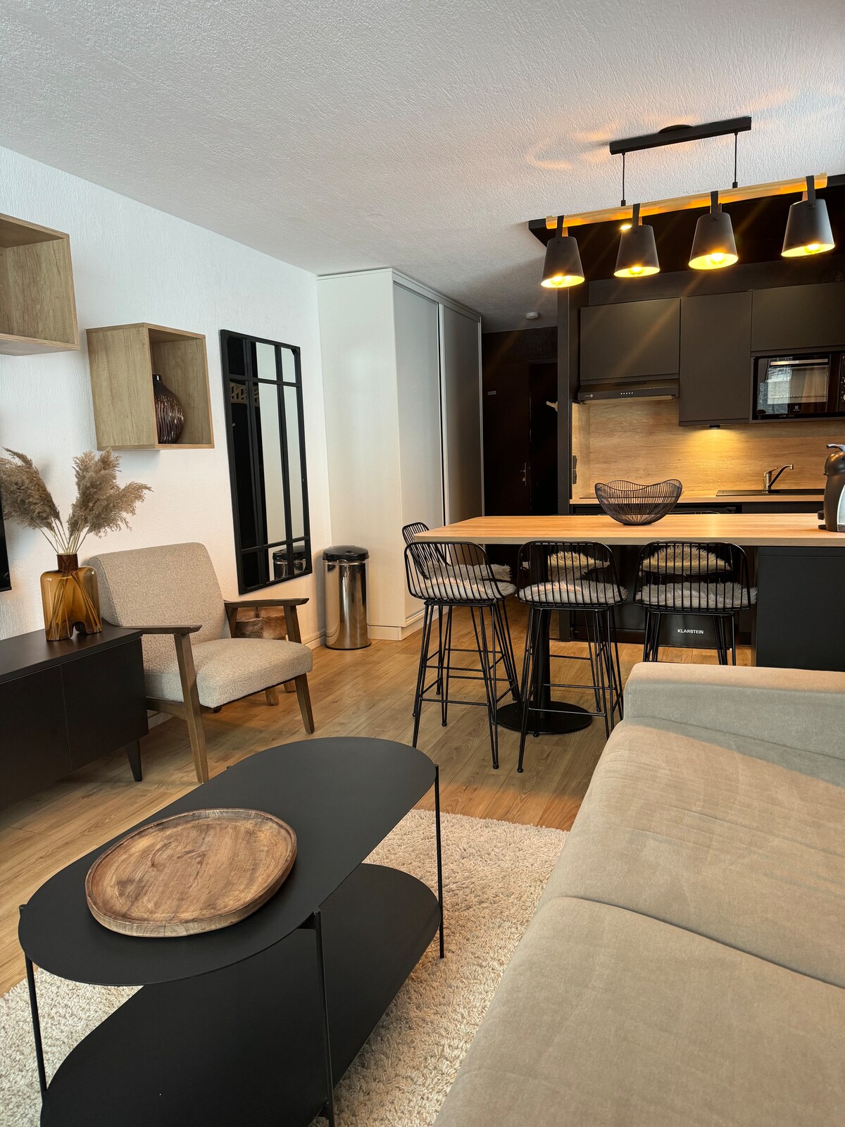 Soyez les premiers à venir profiter de ce magnifique appartement de 53 m², entièrement rénové en juillet 2024. Hiver ou été, en famille ou entre amis, notre appartement sera vous séduire de par son emplacement, son style et son confort. Excellente situation, à 300 mètres des pistes (3min à pied ),retour ski aux pieds, 10 minutes du lac à pied, accès facile au commerce. Vous serez séduit par son incroyable luminosité grâce à son exposition Sud-Ouest sans vis-à-vis. Location du samedi au samedi