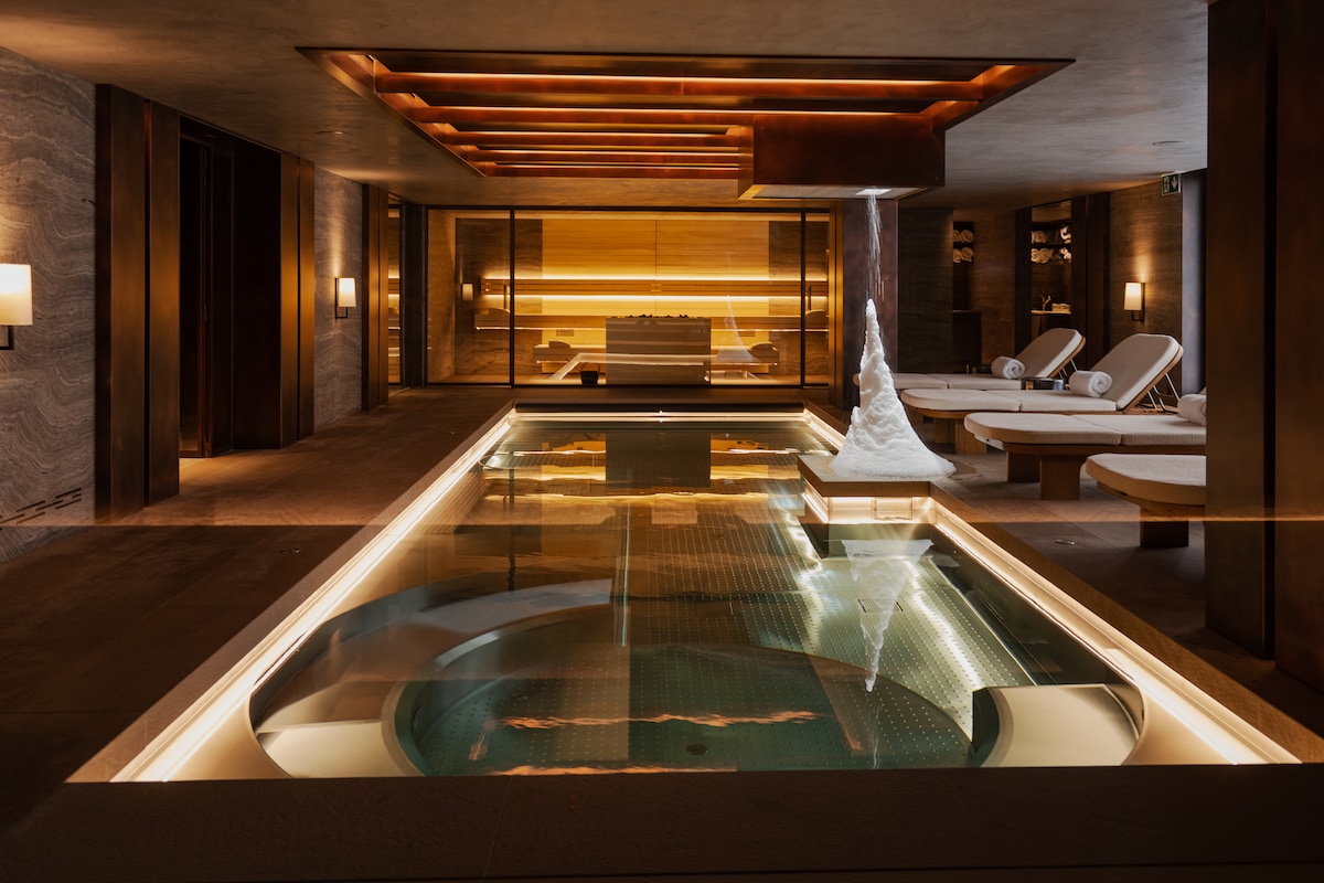 A 5-minute walk from the bustle of boutiques, this glass-walled villa is perfectly poised between the village and the Matterhorn. Let the elevator whisk you up to your favorite aperitif on the sheepskin-covered chairs by the fireplace, or in summer, make your way to the alfresco lounge overlooking colorful wildflowers. Ensuite tubs offer privacy with a view, and the shared hot tub and sauna keep it cozy. Copyright © Luxury Retreats. All rights reserved.
