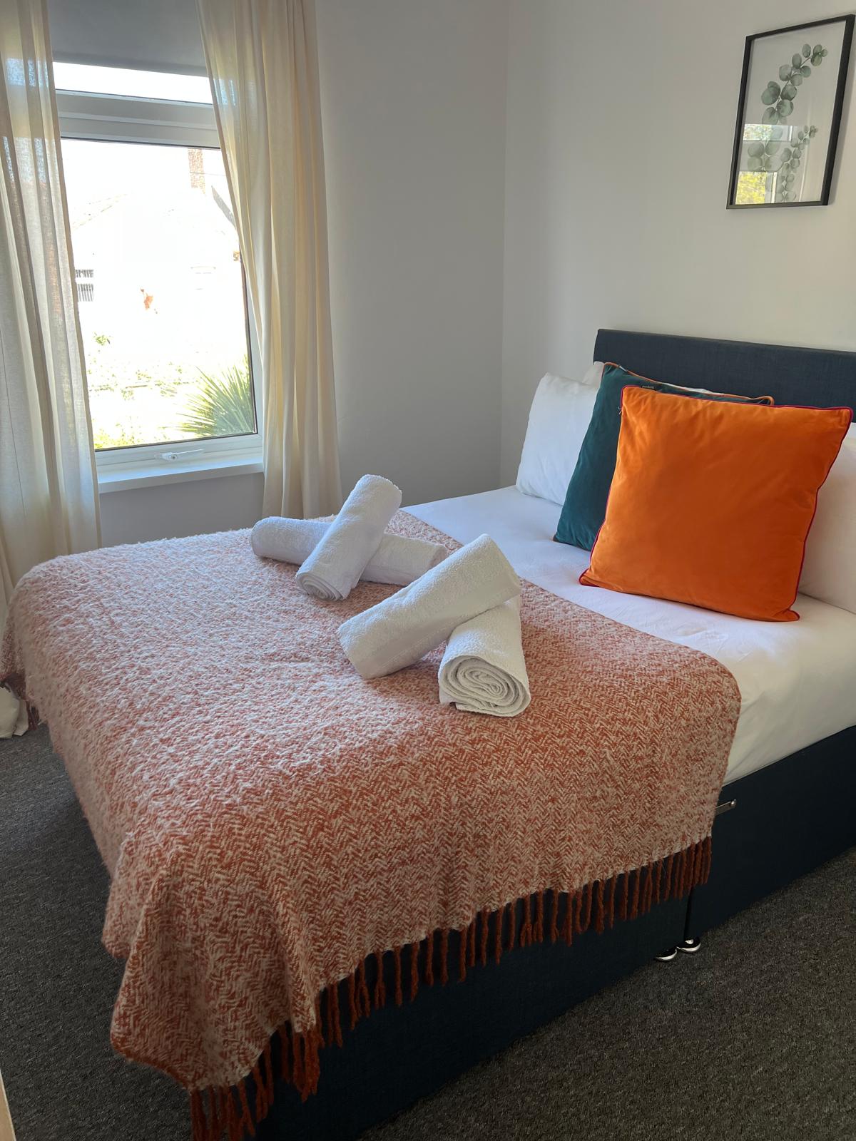 Superhost - Private top floor self/contained flat - kitchen/lounge - ensuite - bedroom/lounge - M/wave, Fridge/freezer. OPTION OF 1 OTHER BEDROOM AND DEDICATED BATGHROOM on the 1st floor for the SOLE USE of the booking group only & INCLUDED IN THE BOOKING PRICE Only one group per visit, if the extra rooms are not needed they remain empty. The ground floor kitchen/dining area, lounge, conservatory & garden can be available. Fibre WIFI, SkyQ, Netflix Parking on the private drive outside