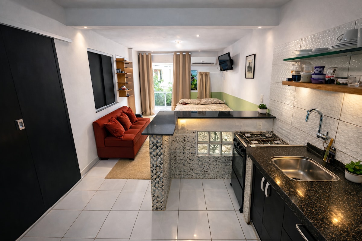 Cómodo apartamento con piscina, Wi-Fi y televisión por cable.