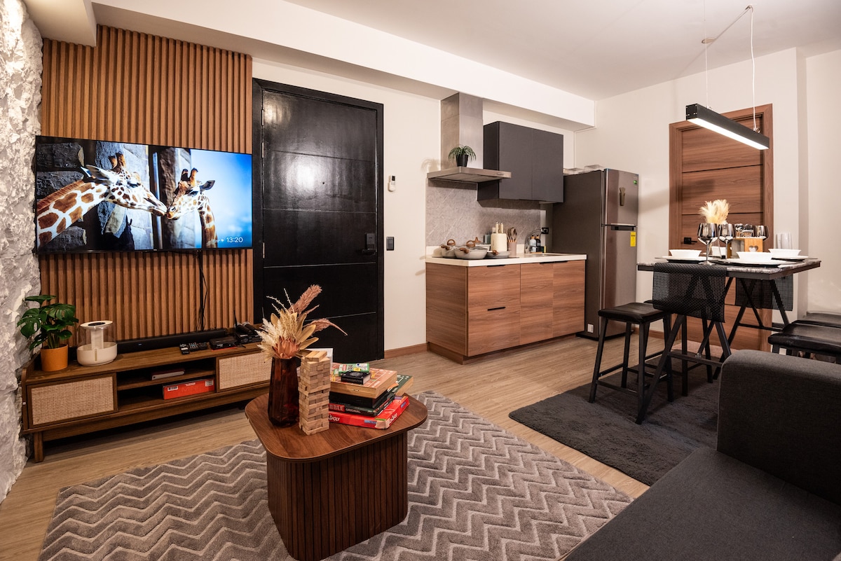 ¡La diversión familiar comienza aquí! Vuelve a conectarte con tus seres queridos en este acogedor y asequible condominio de 1 dormitorio. Disfruta de alquileres semanales o mensuales, una cocina totalmente equipada perfecta para comidas familiares y wifi súper rápido para noches de cine. Además, ¡te espera un kit de bienvenida de cortesía! Estamos perfectamente ubicados cerca de todo: hospitales, tiendas y transporte las 24 horas, los 7 días de la semana. ¡Se admiten mascotas! Mi condominio está en el cuarto piso; no hay ascensor. Puede que no sea apto para huéspedes mayores. ¡Planea tu escapada hoy mismo!