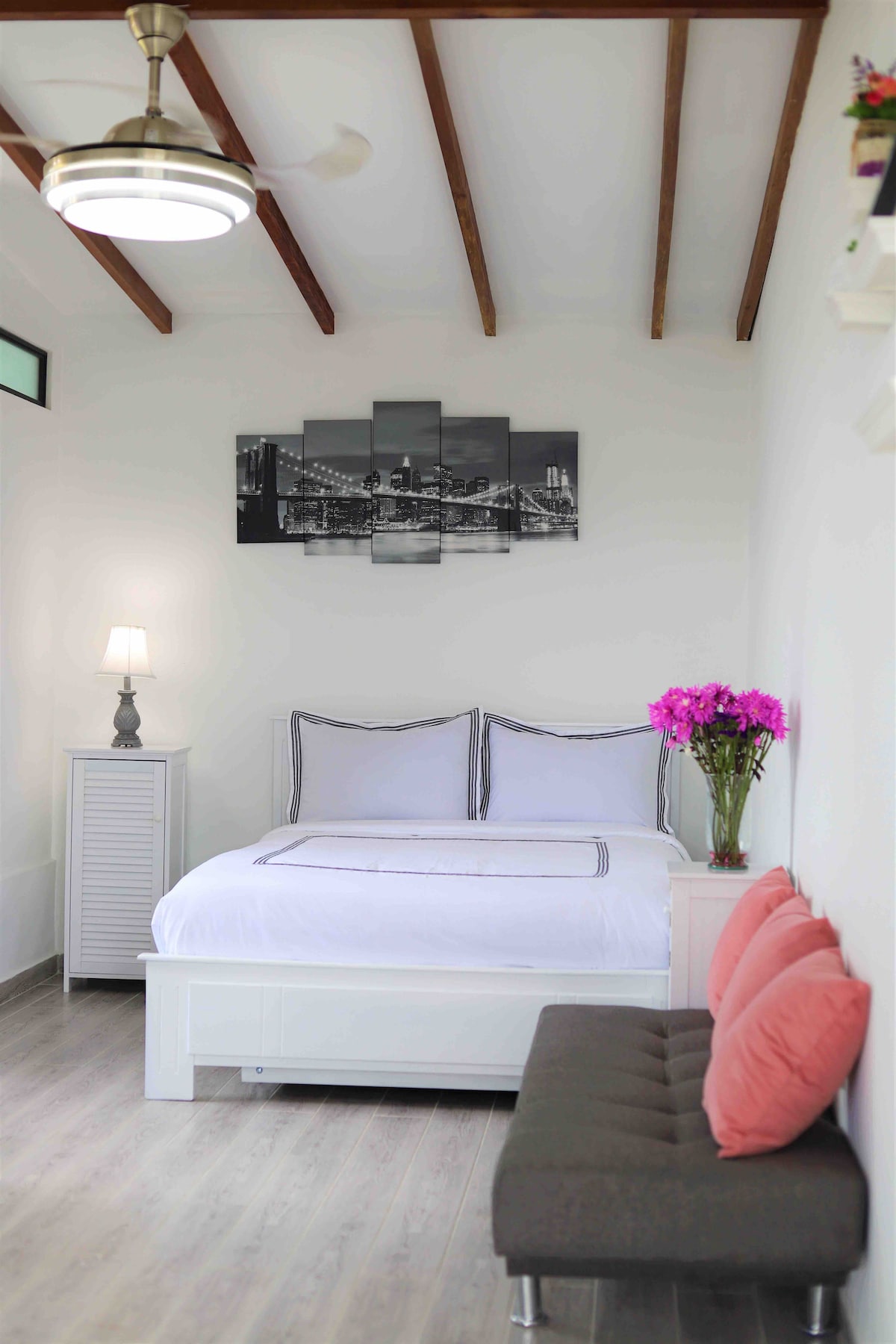 Loft moderno y acogedor en el corazón de Granada, la zona rosa de Cali. A pasos de restaurantes, cafés, bares y tiendas. Ideal para quienes quieren vivir la ciudad. Cuenta con cama doble, cocina equipada, aire acondicionado tipo split, Wi-Fi, escritorio y acceso a patio compartido con lavadora y secadora. IMPORTANTE: POR SU UBICACIÓN EN ZONA ROSA, PUEDE ESCUCHARSE MÚSICA O RUIDO AMBIENTAL, ESPECIALMENTE DURANTE LOS FINES DE SEMANA.