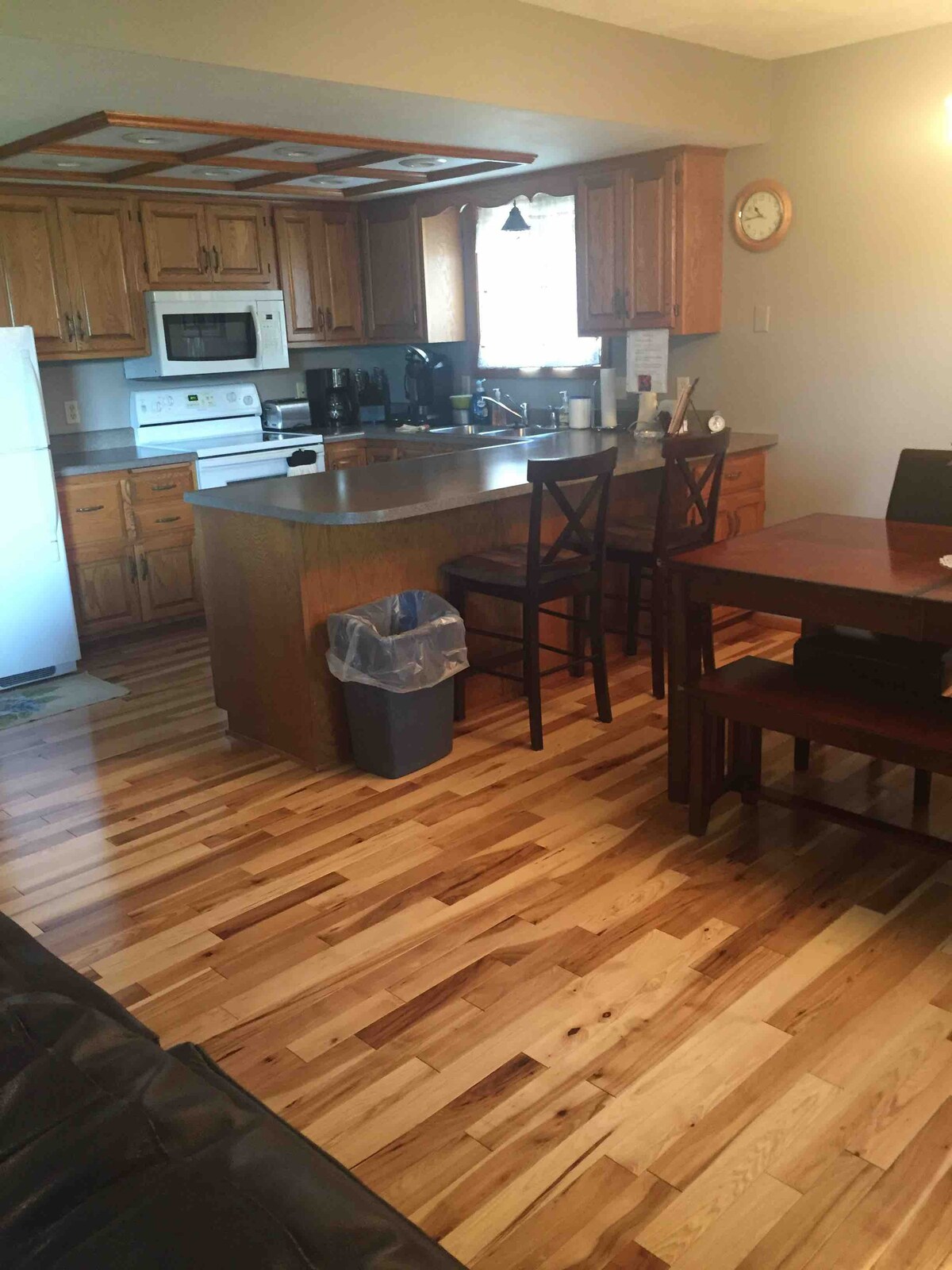 Casa privada recién remodelada con mucho espacio para relajarse. Suelo de nogal americano en toda la planta superior. 2 camas tamaño queen y 2 sofás para dormir. La cocina está equipada con ollas, sartenes, platos, cubiertos y utensilios de cocina. Tú proporcionas los elementos básicos para cocinar. Hay un porche de 3 estaciones para disfrutar de las noches o de la madrugada escuchando pájaros o observando ciervos. También está disponible para grupos más grandes el nivel inferior con 2 dormitorios más y un baño. NADIE MÁS OCUPA LA CASA DURANTE TU ESTANCIA