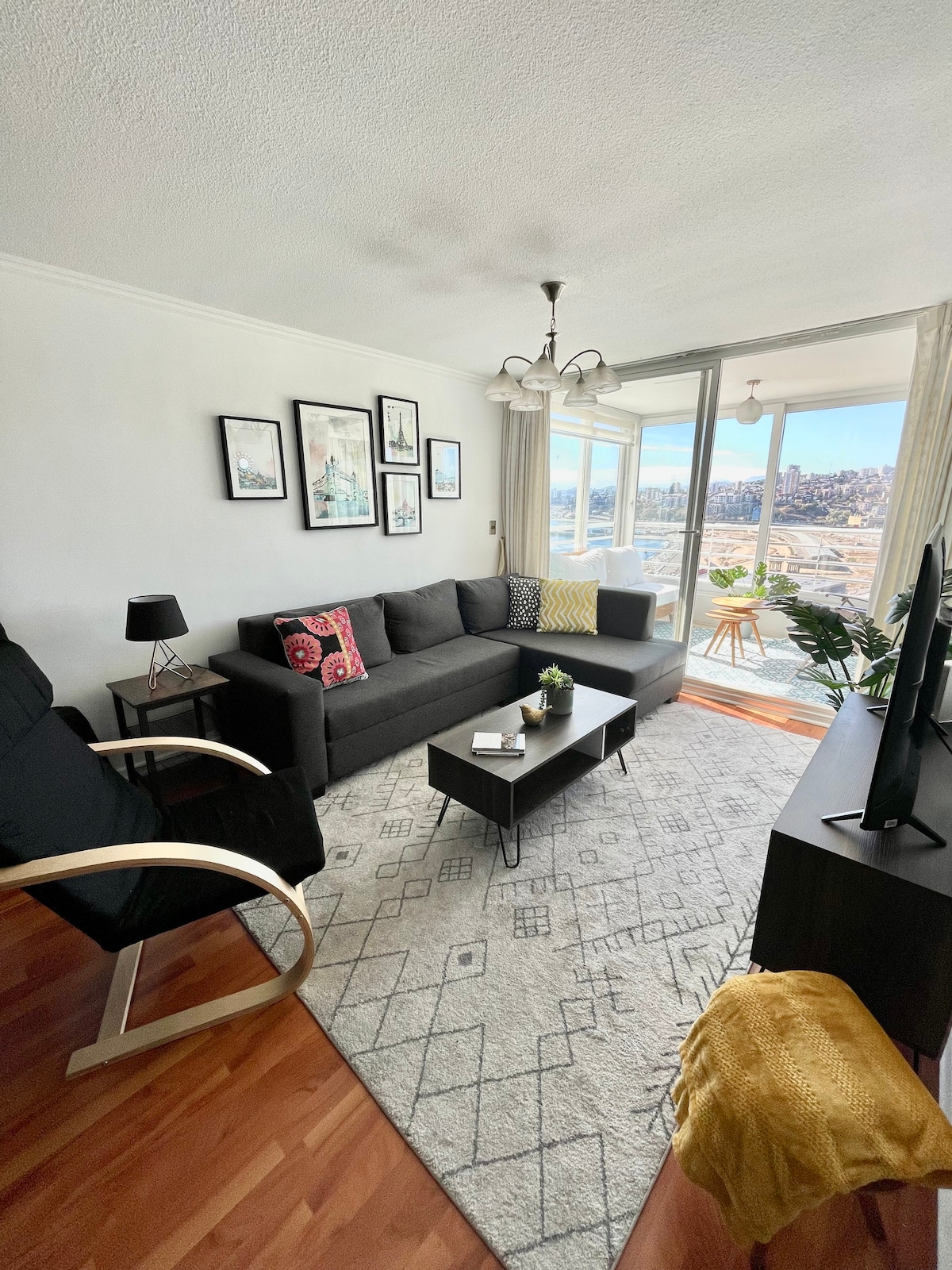 Acogedor y cómodo espacio con espectacular vista al mar! Ubicación estratégica, conexión directa hacia Viña del Mar y lo mejor de Valparaíso. Full equipado, pensado para disfrutar al máximo tu estadía. Zona para teletrabajo, con estacionamiento subterráneo, a pasos de estaciones de metro, fácil acceso a pie a todo tipo de servicios, Imperdible! No apto para niños/mascotas. (No hay cobro extra por aseo,esperamos lo regresen en las mismas condiciones.Manchas SI tendrán un recargo por limpieza).