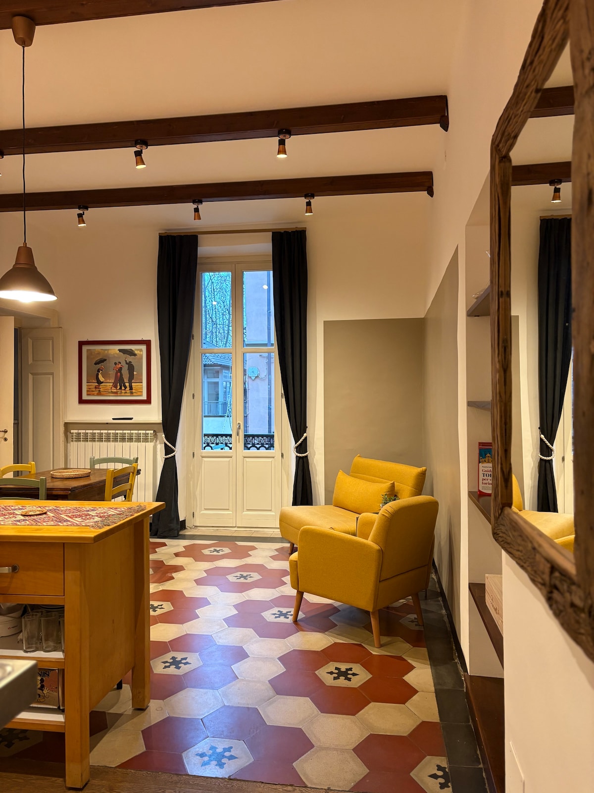 L'appartamento è stato elegantemente ristrutturato nel 2023 e dotato di tutti i comfort. È situato in via Giuseppe Verdi, nel cuore del centro storico di Torino...a soli 100 metri dal simbolo della città, "la Mole Antonelliana" ed affianco l’Università di Lettere. Pur essendo nel centro storico, l’abitazione è estremamente tranquilla e silenziosa perché si trova all'interno di un’antica corte del XVIII secolo.