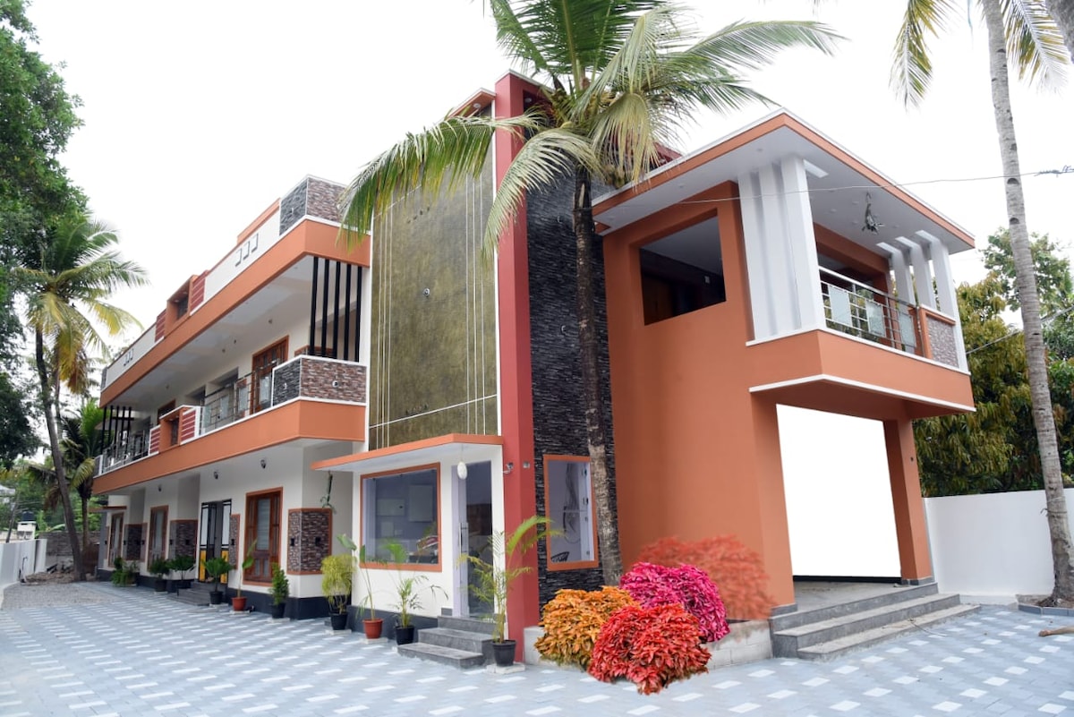 Relájate con toda la familia en este tranquilo hogar. Comodidad de la ubicación: a 100 m del complejo hospitalario de clase mundial Kim Health, a 5 km de la estación central de trenes y autobuses de Trivandrum, a 3 km del aeropuerto, a 1 km del hipermercado Lulu y a 5 km de Technopark, el centro de las empresas de TI en Trivandrum. El remanso de Akkulam y el pueblo turístico está a unos 2 km de esta propiedad. Este lugar es único porque ambos dormitorios tienen postales pintorescas y vistas panorámicas a través de las ventanas.