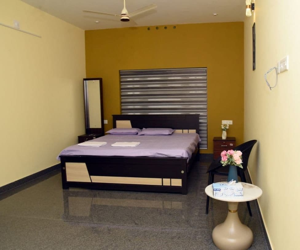 ¡Te damos la bienvenida a tu sereno hogar lejos de casa en el corazón de Trivandrum! A pocos pasos del emblemático templo Sree Padmanabhaswamy. El espacio: 1 dormitorio con cama tamaño king Sala de estar con sofá cama y TV Baño con agua caliente Cocina totalmente equipada. Por qué te encantará: A poca distancia a pie del templo Fácil acceso a tiendas locales, restaurantes y transporte público Perfecto para viajeros solitarios, parejas o familias pequeñas ¡Reserva ahora y disfruta de una estancia tranquila en el corazón cultural de Trivandrum!