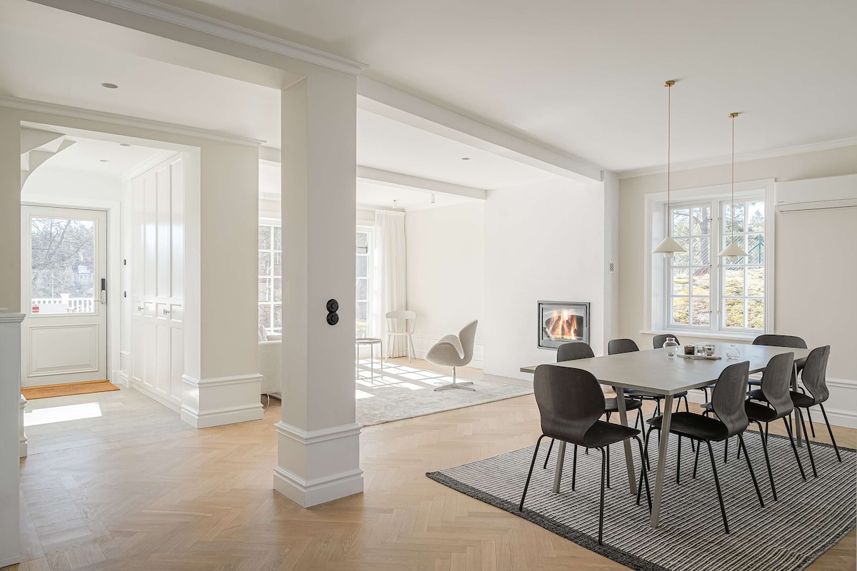 -Skärgårdsvilla i fantastisk miljö från 1922 som ligger precis vid vattnet. -Jacuzzi för bad i solnedgången, -Sol från morgon till kväll och 300 kvm soldäck. -Vacker sjöstuga med stor dubbelsäng. -En härlig lounge miljö under tak med både utekök och grill. -Bryggan vid sjön är perfekt att starta dagen på med ett dopp i sjön och morgonkaffet -2 kajaker, roddbåt och SUP bräda finns om man vill ut på vattnet. -Snabbt wifi och 65" LED TV med stort TV-paket. 400 år gammal ek i trädgården
