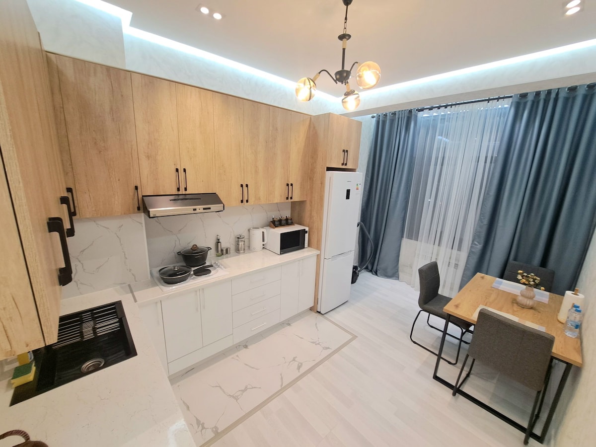 Un apartamento totalmente nuevo en el centro de la ciudad de Dushanbe. Acogedor y elegante dormitorio y sala de estar con colores neutros que harán que tu estancia sea cómoda. Impresionantes vistas a la ciudad. Cocina nueva totalmente funcional. Hay muchas tiendas y restaurantes en las inmediaciones. A 5 minutos a pie de la avenida Rudaky.