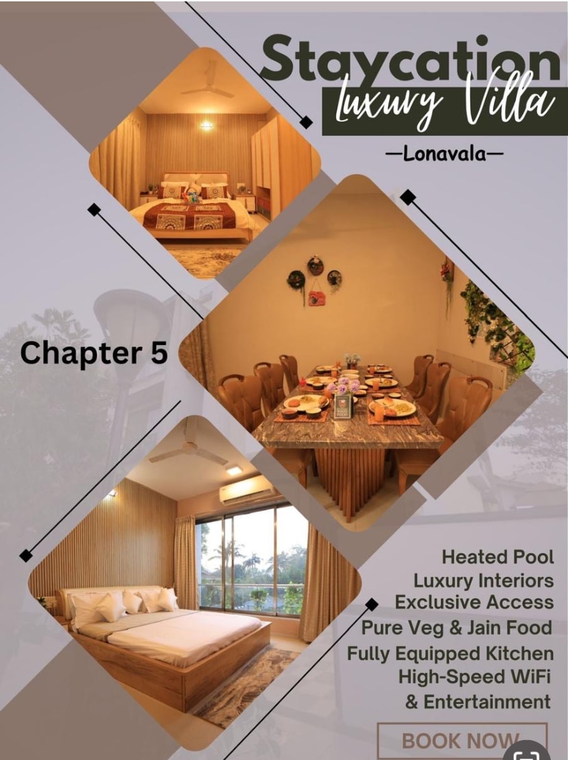 Disfruta de la mejor escapada en nuestra lujosa villa de 5 dormitorios, ubicada en una ubicación privilegiada de Lonavala. Repartido en una amplia parcela privada, este moderno refugio cuenta con interiores elegantes, una zona de entretenimiento dedicada, una enorme piscina con una piscina para bebés y jacuzzi, y un césped bellamente ajardinado, perfecto para relajarse o celebrar momentos especiales. Con amplios alrededores y estacionamiento para hasta 8 autos, esta villa ofrece privacidad, comodidad y una grandeza inigualable.