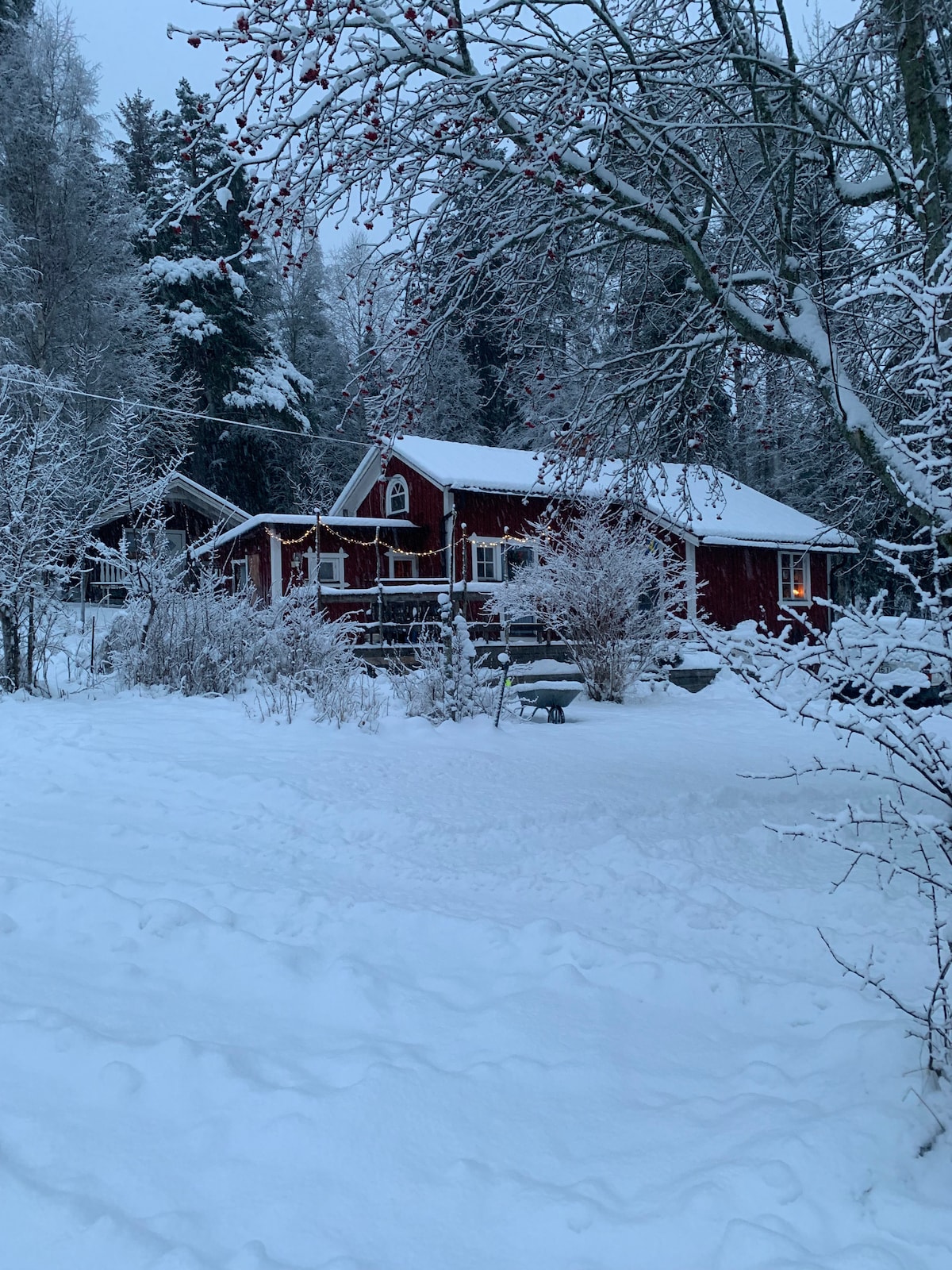 La cabaña ('härbre' en sueco) es una de las varias pequeñas dependencias en un entorno pintoresco. El edificio es del siglo XIX. La planta baja ha sido cuidadosamente renovada utilizando métodos tradicionales de conservación de edificios. Hay una pequeña cocina con agua fría, una nevera y una placa de cocción. El aseo exterior está a solo unos pasos. La ducha está en el edificio principal. El bosque está a la vuelta de la esquina con buenas oportunidades para paseos más cortos o más largos. Aparcamiento gratuito.