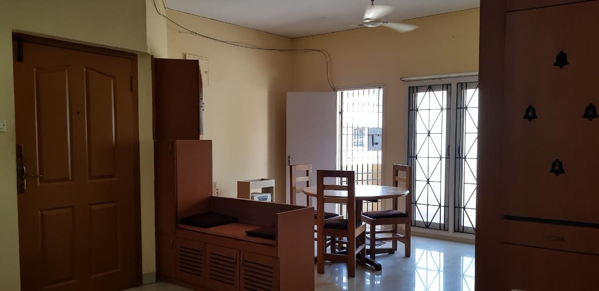 - 2 dormitorios con armarios y baños adjuntos. - Aire acondicionado en la sala de estar y 2 dormitorios. - Wifi de alta velocidad y TV inteligente. - Cocina modular: cocina de inducción, microondas, nevera, hervidor y elementos esenciales. - Relajante columpio de madera en la sala de estar. - Limpieza en días alternos para una estancia sin complicaciones. - Lavadora para tus necesidades de lavandería. - Servicio de conductor de guardia disponible. - A 2 minutos a pie de Velachery 100 ft Road - A 10 minutos a pie de Phoenix Market City. - A 10 minutos a pie de IIT Chennai (Velachery Gate) y Gurunanak College