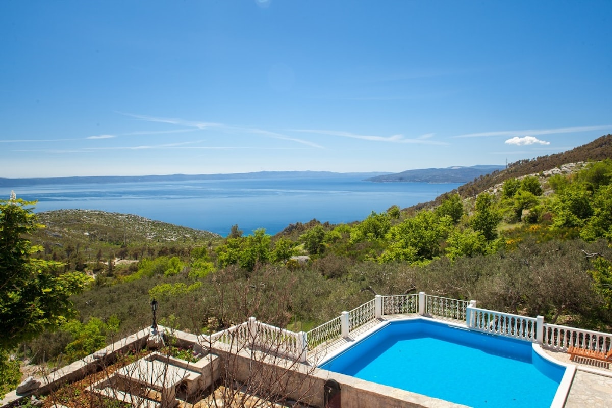 Moderna casa de vacaciones Villa View con piscina infinita climatizada al pie de la montaña Biokovo y su parque natural. La villa está situada en un entorno maravilloso, tranquilo y natural con pinos y olivares. En la planta baja se encuentra la hermosa piscina infinita climatizada con masaje (33 m²), desde la que se tiene una impresionante vista panorámica de la ciudad de Makarska, el mar y la isla. Querrás quedarte para siempre en esta villa modernamente equipada con jacuzzi y sala de fitness.