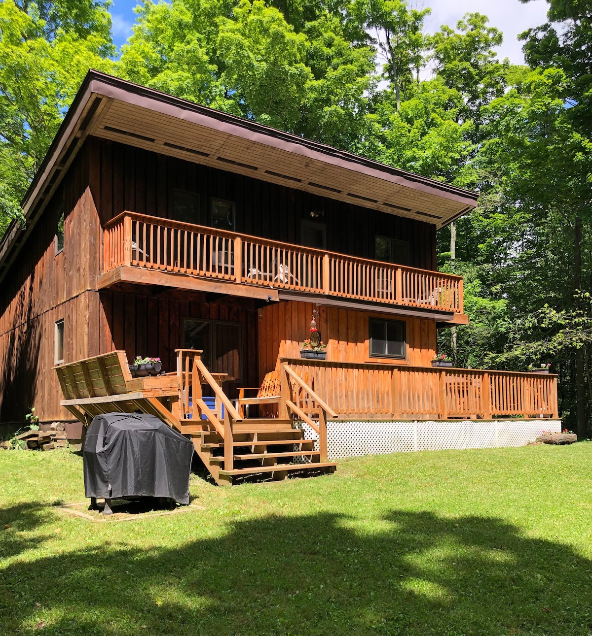 Esta cabaña rústica en el bosque ofrece una chimenea exterior, parrilla de carbón, comedor al aire libre, cocina completa, sala de estar, 2 dormitorios y 1 BAÑO. Se encuentra cerca de estaciones de esquí de fondo y alpino, campo de golf, senderos para motos de nieve, cerca del lago Erie y el lago Findley para nadar, pasear en bote, pescar y la ruta del vino del lago Erie con más de 50 millas de viñedos.