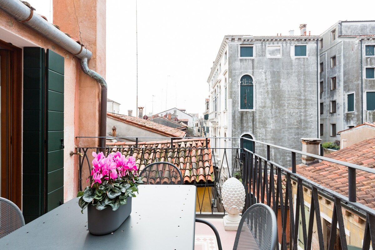 Acurrúcate con un libro, desayuna y cena mientras admiras la increíble vista de los campanarios y canales de Venecia, vive como un verdadero veneciano en el barrio más típico de Venecia a pocos pasos del puente de Rialto, Ca' D'oro y San Marco en un apartamento acabado con muebles y adornos hechos por artesanos venecianos y de Murano. Te sentirás como si estuvieras experimentando el fantástico ambiente de los años 1800, pero con todas las comodidades de un apartamento moderno. No te pierdas esta increíble experiencia.