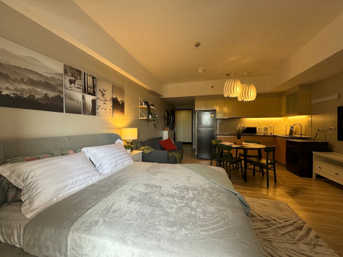 Disfruta de una estancia de lujo en este estudio de estilo hotelero en el fuerte, donde la elegancia moderna se une a la comodidad del hogar. Descansa en una cama tamaño queen de espuma viscoelástica Senso. Relájate con un televisor inteligente de 75 pulgadas y Netflix. Cocina en una cocina totalmente equipada o relájate en la ducha de estilo italiano. A solo 5 minutos a pie del centro comercial Venice Grand Canal Mall y a minutos de BGC, perfecto para vacaciones, viajes de negocios o escapadas de fin de semana. Agrega mi anuncio a tus favoritos.