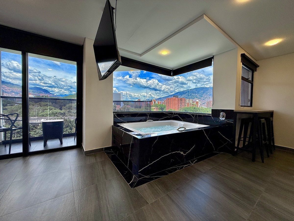 You will be in a private Jacuzzi in the sky!!! , El Poblado, 300 MBPS Internet, HD TV, free parking, great place for working REmotel and those who want to enjoy their holidays, you will be just 7 mins by UBER to Provenza. Walking distance you find train station. Oviedo and Santa Fe Shopping malls, 24/7 grocery store and ATM just around the corner, Building has Gym, CoWorking area, Breakfast (Optional). The best place to stay in Medellin. Unique private Jacuzzi and terrace MEDELLÍN! RNT253422