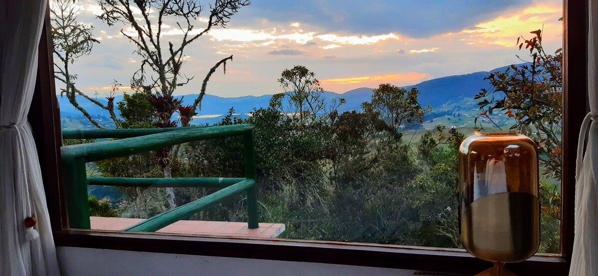 Bienvenido a nuestro remanso de paz situado en las montañas de Colombia, a una hora de Bogotá! Disfrute de la mejor vista desde su propio bungalow, de un bello fuego calienta en su interior! Ideal para pasar unos días de Relax, para conectar con la naturaleza y para disfrutar del canto del colibrí; o si prefieren pueden salir de excursion a Guatavita, Chingaza o caminata al Parque Pionono. También de experiencias nuevas como parapente, mountain biking, avistamiento de aves o aguas termales.