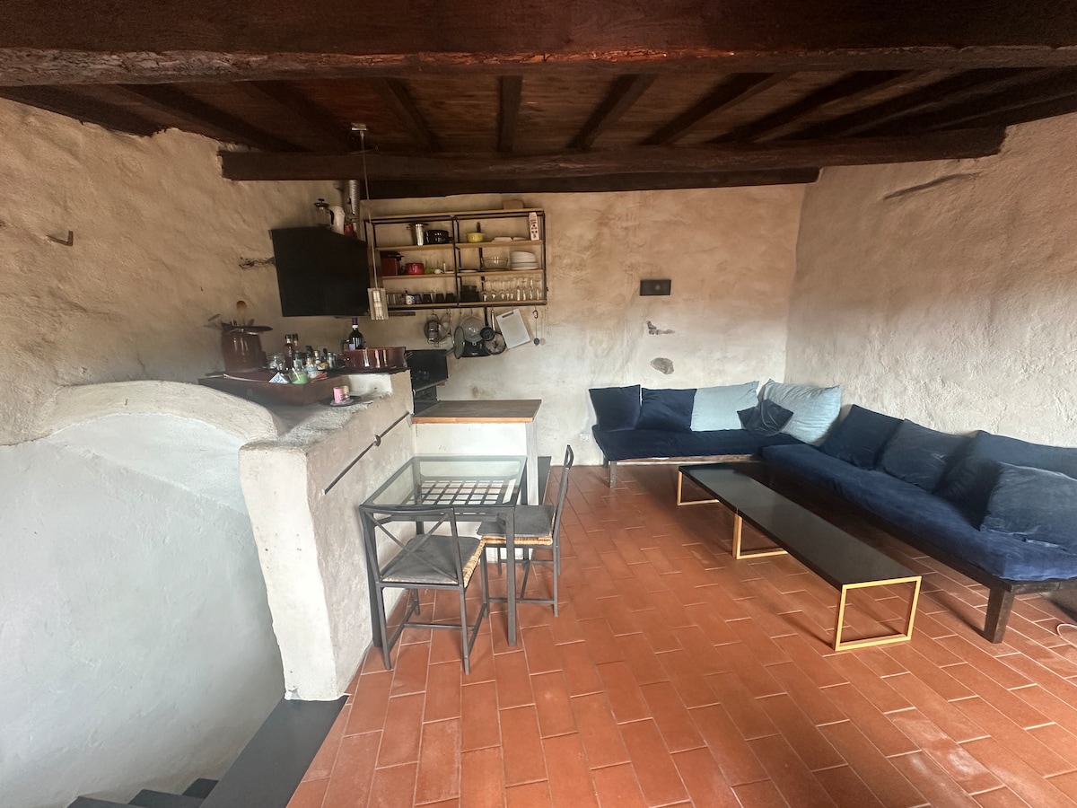 Un espacio sencillo y romántico, una habitación sin florituras con cocina americana y una pequeña terraza con vistas al río: desde aquí se puede ver un pequeño puente de piedra... y el sonido del agua que fluye. El alojamiento es una gran bóveda: toda la casa ha sido restaurada con materiales naturales, cal y barnices hechos con harina y aceite de lino. Para los meses de invierno hay una estufa de leña que los huéspedes pueden gestionar de forma independiente. Se proporciona leña para la estancia.