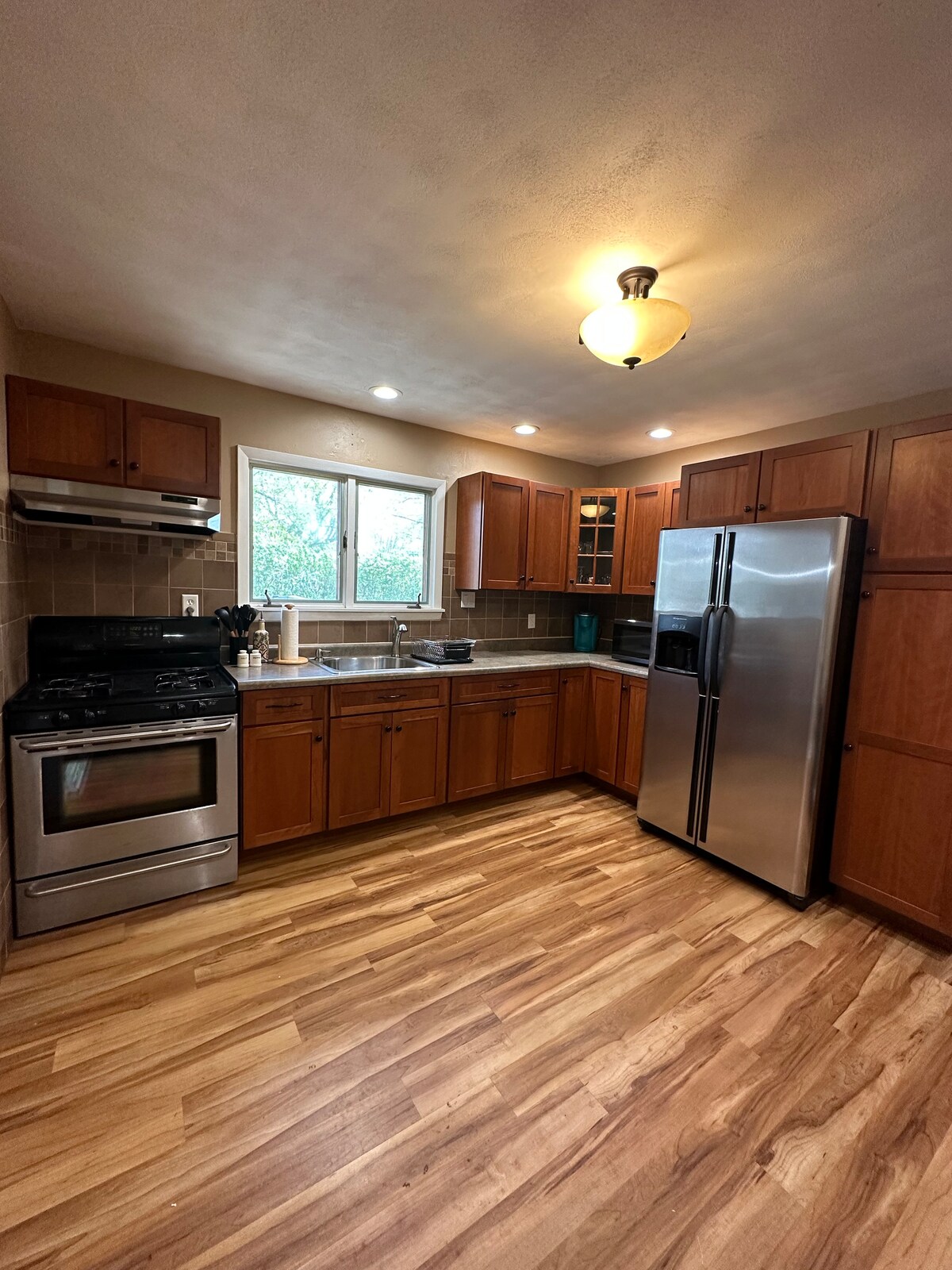 Diviértete con toda la familia en este elegante lugar. Acabo de actualizarlos con los servicios. Lavandería en el lugar, ducha de azulejos a ras de suelo, microondas, ¡cafetera, internet y mucho más! ¡Tiene un porche delantero lindo en el que puedes sentarte y disfrutar de tu café por la mañana! Céntrica en una zona tranquila. Lo sentimos, no hay mascotas ni fumar en el interior. Incluye una cama tamaño queen y un sofá plegable. Ofrecerá tarifas mensuales con descuento