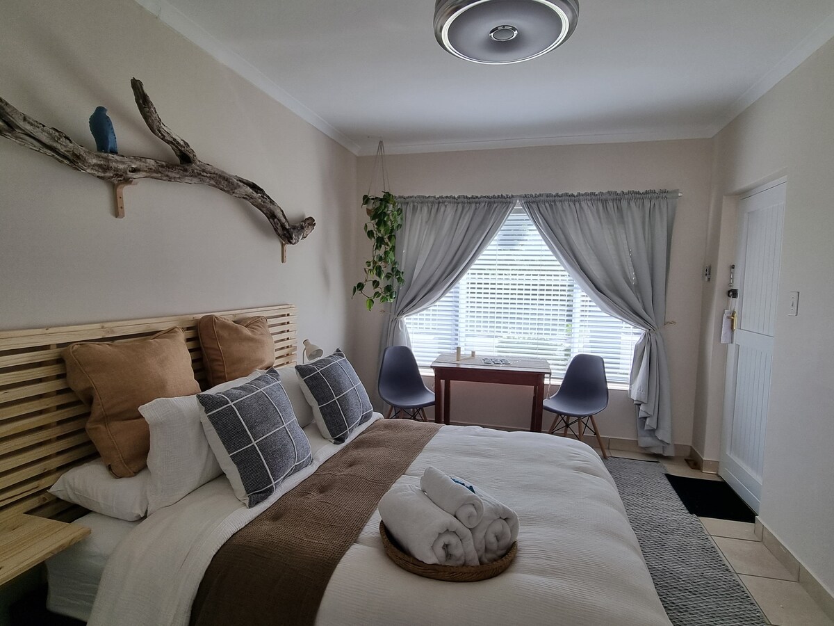 ¡Ven a ver las ballenas y prueba el vino! Romántica casa de campo independiente con acabados de calidad en una finca segura, Onrus, a 30 minutos a pie de la playa. Ubicado entre árboles, seguro, privado, entrada propia. Tiene capacidad para 2 adultos en el dormitorio en suite + 2 adultos/niños en literas en el salón (no se admiten niños menores de 2 años). ¡Jerez y leña gratis! Wifi, DSTV, Netflix, estacionamiento gratuito. Solárium con parrilla de gas. Ropa de cama de calidad. Aire acondicionado. Mercados, rutas vinícolas y paseos por la naturaleza. Nota: hay escaleras. GENERADOR PARA LOADSHEDDING