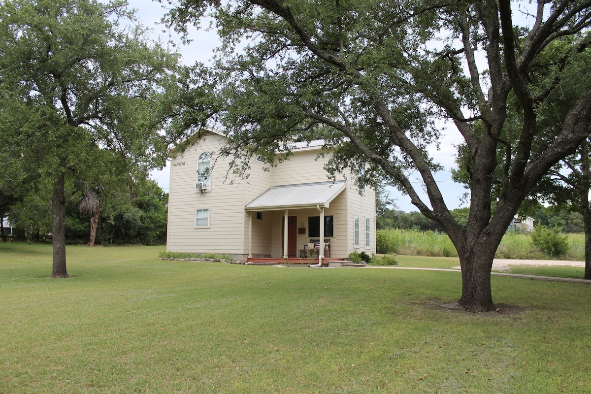 TEMPLE, TEXAS Casa de campo rústica de 2 dormitorios y 2 pisos. 980 s/f completamente amueblada. Ubicado a las afueras de los límites de la ciudad del Templo del Sur, que ofrece un toque de vida en el campo, gran lote de varias acres, sin vecinos cercanos, mucho espacio y comodidad con fácil acceso a Temple y Belton. Perfecto para familias pequeñas, estudiantes o personal médico. Internet, TV Roku de 47 pulgadas, paquete de TV por cable Spectrum gratuito, canales por aire, WiFi, estudio, cocina, comedor, aire acondicionado/calefacción, escritorios, sillas, porche delantero, terraza en la parte trasera.
