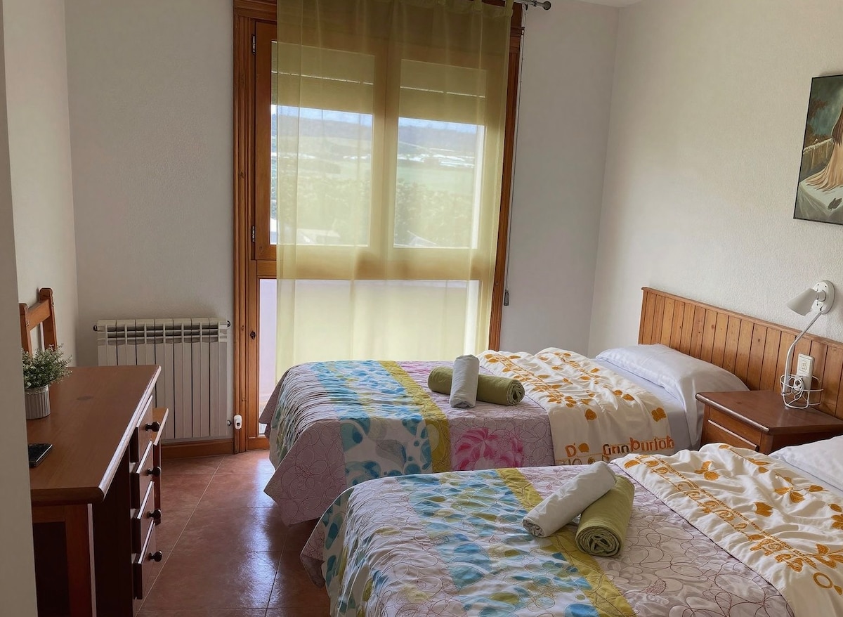 ¡Bienvenido a nuestro acogedor apartamento! Con vistas panorámicas a las montañas, nuestro alojamiento es el refugio perfecto para los amantes de la naturaleza y la aventura, brinda la oportunidad de experimentar la belleza natural de la zona mientras disfrutas de la comodidad y el confort. La ubicación de nuestro alojamiento te permite acceder fácilmente a rutas de senderismo que te llevarán a descubrir parajes naturales. Podrás disfrutar del románico de la zona junto al Camino de Santiago.