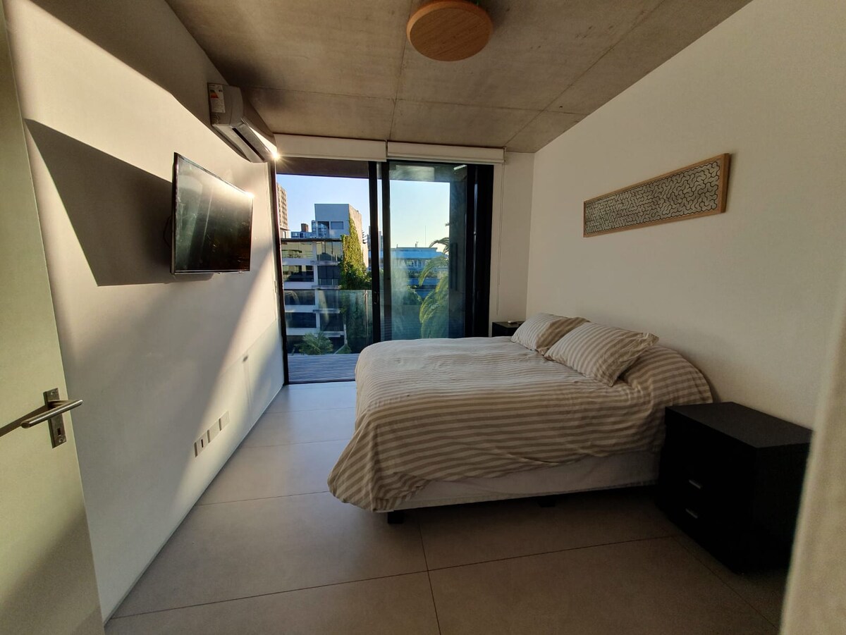 Respire calma y tranquilidad en este confortable apartamento con una inmejorable vista al río. Por la mañana, deje que la fresca brisa acompañe un desayuno en la barra de la luminosa cocina. Relájese en la cómoda y mullida cama de la habitación principal luego de la jornada de trabajo. Y disfrute de un típico atardecer contemplando las embarcaciones que llegan al Puerto de Olivos desde el balcón del living. Con todo lo necesario, cada ambiente está diseñado para que su estadía sea especial.