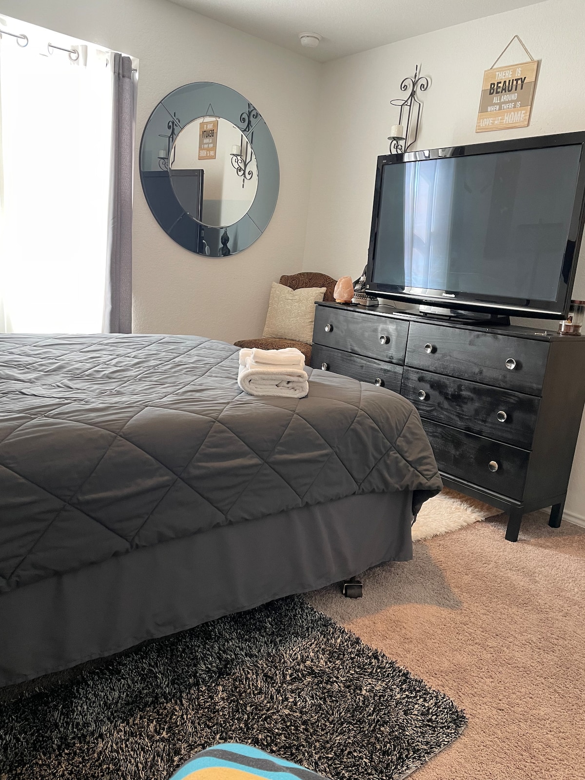 Calificación promedio: 5 de 5; 10 evaluacionesTX1. (Habitación C) Amplia cama king con sala de juegos
