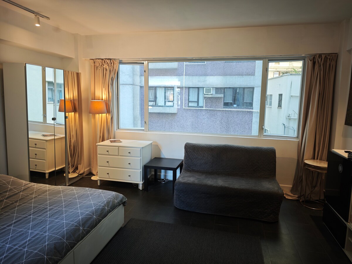 LO MÁS DESTACABLE - Estudio ideal con cama tamaño queen. - A poca distancia a pie de Soho, PMQ, LKF, Central MTR. PRESTACIONES - Máquina de café expreso, mezcla, horno, freidora de aire, olla instantánea, cocina Sous, microondas, mezcladora. -Dyson Airwrap - Ducha ReFa. - Plancha de vapor. - Parlante Bose - Proyector de cine en casa. CELEBRACIÓN - Decoraciones reutilizables para fiestas y despedidas de soltera. ELEMENTOS BÁSICOS - Deslizadores, cepillos de dientes, artículos de ducha. - Cuidado de la piel báscia. DELICIAS ESPECIALES -3 días: aperitivos gourmet -7 días: cuidado de la piel de lujo -10 días: vino prémium