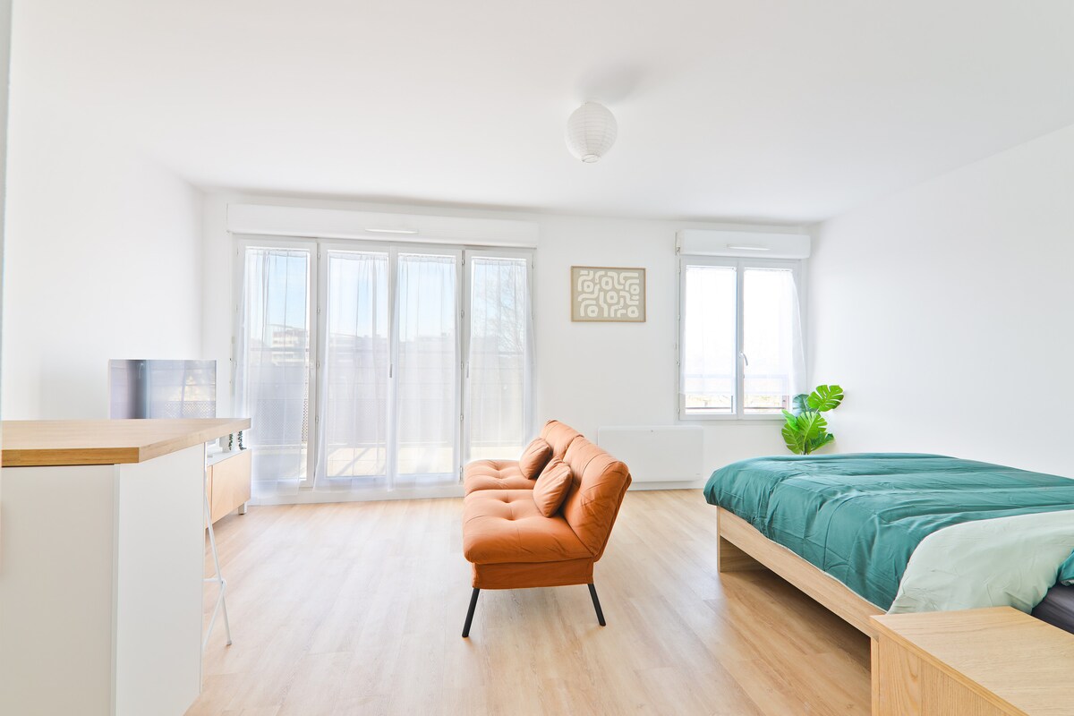 Calificación promedio: 5 de 5; 4 evaluacionesEstudio luminoso con balcón - Cerca de Orly y París