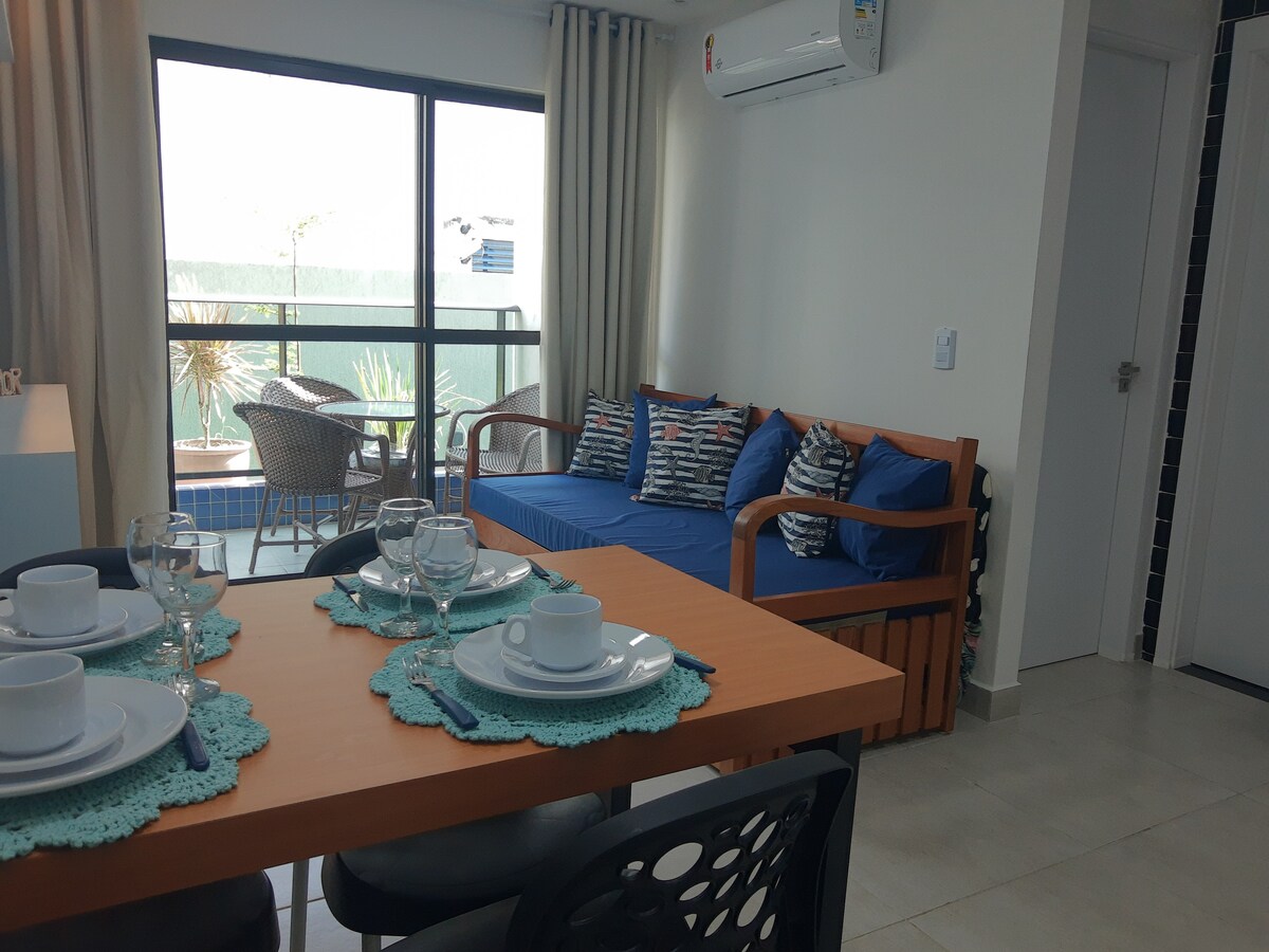 Alójate en nuestro acogedor, moderno y súper bien ubicado apartamento: en el centro de Oporto y a solo 200 metros del mar. El espacio fue diseñado para la comodidad total de hasta 3 personas, con una cama doble + una cama auxiliar y una cocina completa. Tenemos una piscina en la azotea, áreas gourmet, piscina, salón y recepción las 24 horas. Un refugio perfecto para aquellos que quieren disfrutar de Porto de Galinhas con comodidad y todo cerca NOTA: Como el edificio es nuevo, puede haber algo de ruido ocasional debido a las renovaciones en otros apartamentos.