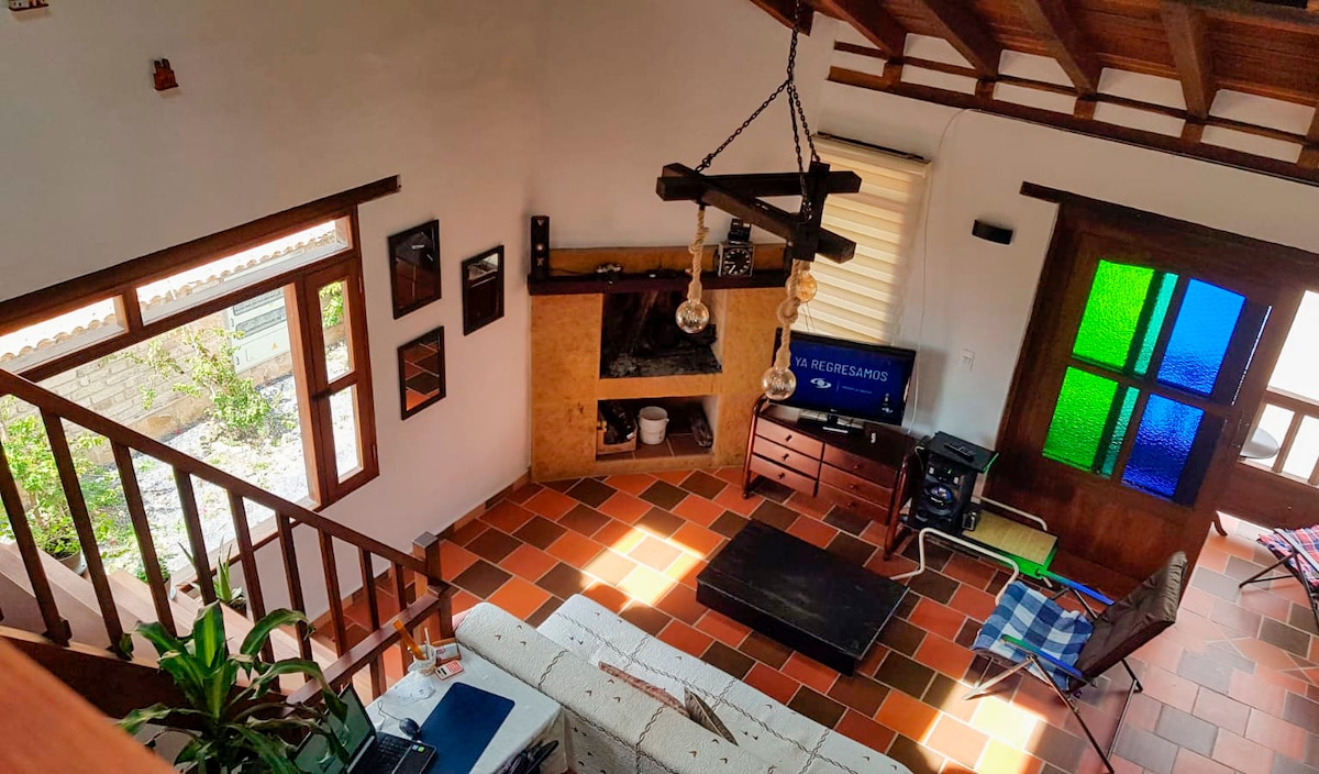 Villa de los Juanes es un refugio perfecto para relajarse y conectarse con la naturaleza. Nuestra casa te ofrece dos habitaciones independientes con camas dobles, comedor, baño, estudio de trabajo, cocina equipada, patio al aire libre, BBQ, Jacuzzi, estacionamiento privado y 3.400 mts de espacio verde. Brindamos wifi rápido , televisión, libros y juegos de mesa. Déjate encantar por la paz que se inspira este hermoso lugar. A sólo 10 minutos en carro de Villa de Leyva (5 km).