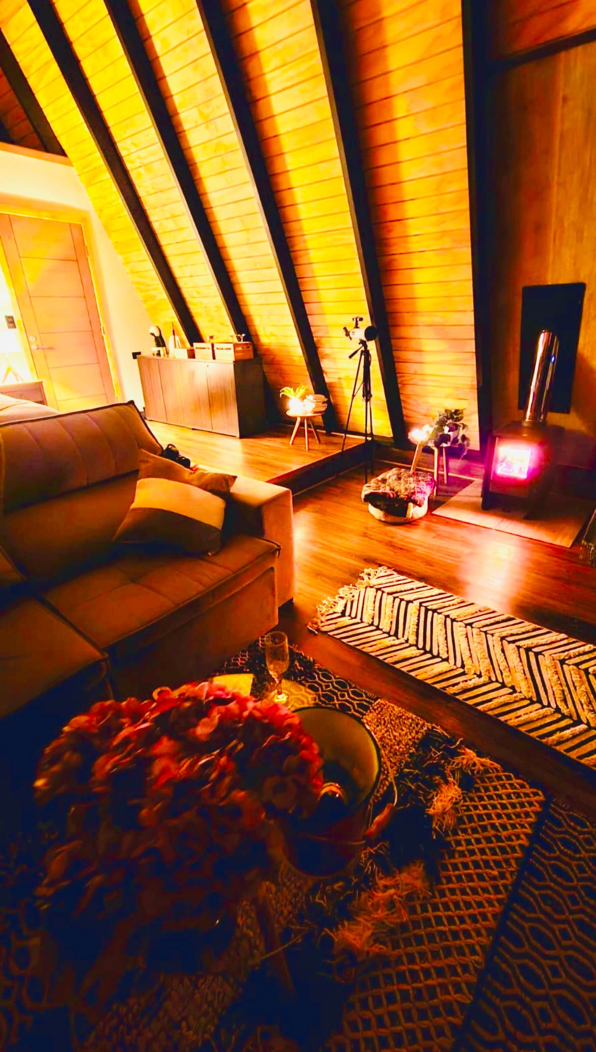A 45 minutos (32 km) de Pucón, hermosa cabaña alpina inserta en el bosque, pensada para una experiencia de desconexión y vida simple. Silencio, canto de aves, árboles nativos, sol y lluvia cordillerana, con excelente WiFi. Contamos con energía eléctrica convencional e incorporamos energía renovable para ser más conscientes con el planeta. Calefacción estufa a pellet y cocina a leña, para quienes valoran la vida simple y consciente. Si amas el bosque más que los lujos urbanos, esto es para ti!