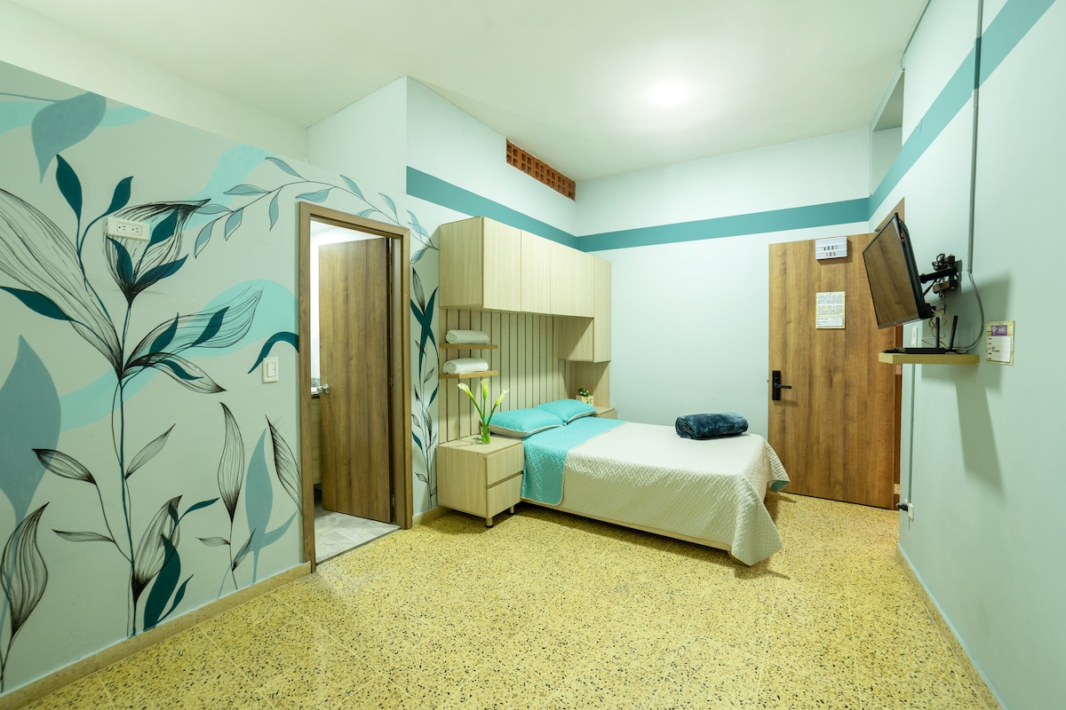 💰Somos EXCLUSIVOS en Medellín, NO cobramos la comisión de Airbnb. 🌴 En el Corazón de la Ciudad 🌴 Alojamiento en Bomboná, Medellín. - Cocina equipada 🍳 Nevera, microondas, estufa eléctrica. -Utensilios básicos cocina. - Ducha eléctrica 🚿 - TV 📺 - Ventilador ❄️ - Cama 1.40m 🛏️ con almohadas ortopédicas y gel - Barra y 2 sillas 🍹 -Servicio de Lavanderia (costo extra) - Internet 500M 📶 de fibra óptica Reserva ahora y experimenta Medellín en el corazón de la ciudad 💚