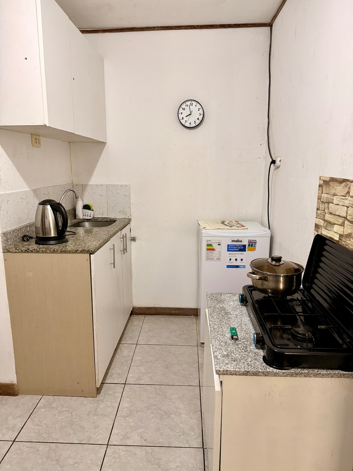 Mini depa privado e independiente en 2do. piso (acceso con escaleras) completamente amoblado, consta de tres ambientes: Dormitorio con cama queen size, amplio closet y escritorio, Wifi fibra óptica, Smart TV 50” con WinTv, Cocina/comedor, 1 sofá cama y al lado baño completo privado. Áreas comunes como terraza, jardín y piscina son de uso compartido. Barrio tranquilo y seguro, vigilancia privada. Cerca de avenidas con trasporte público, bodegas, banco, lavandería, restaurantes, farmacias, etc.