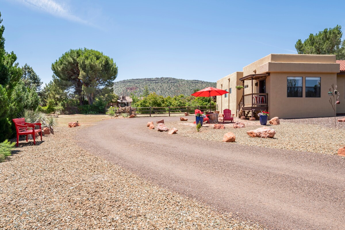 Coge las sillas Adirondack para una noche de observación de estrellas en una de las pocas comunidades de cielo nocturno designadas en el país. Repleto de estilo suroeste, esta tranquila escapada ofrece unas vistas espectaculares de las rocas rojas desde tu suite privada y patio privado. Tranquila y aislada suite con baño ubicada en 1 acre de propiedad en un barrio de lujo en el pueblo de Oak Creek, Sedona. La suite está unida a la parte principal de la casa con entrada privada/baño privado. Separada y asegurada por dos puertas cerradas con llave. Aparcamiento privado con entrada sin llave. No hay espacios compartidos. Suite de invitados completa con entrada privada y baño. Zona de patio al aire libre para relajarse y disfrutar de las increíbles vistas de las rocas rojas. Estoy disponible por mensaje de texto o llamada telefónica en cualquier momento. O en persona. Esta propiedad privada aislada de 1 acre se encuentra en el exclusivo barrio de Village of Oak Creek, cerca de más de 135 rutas de senderismo y ciclismo de Sedona. A pocos minutos de Uptown Sedona, esta tranquila comunidad ofrece pintorescas cafeterías y restaurantes elegantes y casuales. La suite se encuentra cerca de varios lugares de interés famosos como Bell Rock, Cathedral Rock, la capilla de la Santa Cruz, Courthouse Butte y el sendero Little Horse. Muchos otros lugares de interés. Todo a pocos minutos de aquí en auto, ya que el transporte público es limitado. No se permiten drogas ni armas. Hay un toque de queda de ruido a las 22:00 horas. No se permite fumar en la propiedad ni en la suite. No se permitirá el uso pornográfico, racista o sexualmente explícito del wifi personal del anfitrión. Suite Mimosa es una encantadora y acogedora suite privada ubicada en un barrio de lujo en el pueblo de Oak Creek, aislada en este hermoso 1 acre de propiedad privada. Tendrás acceso a más de 135 rutas de senderismo y ciclismo únicas de la zona, una comunidad que ofrece pintorescas cafeterías y restaurantes elegantes y restaurantes informales, a solo minutos del bullicio de Sedona.