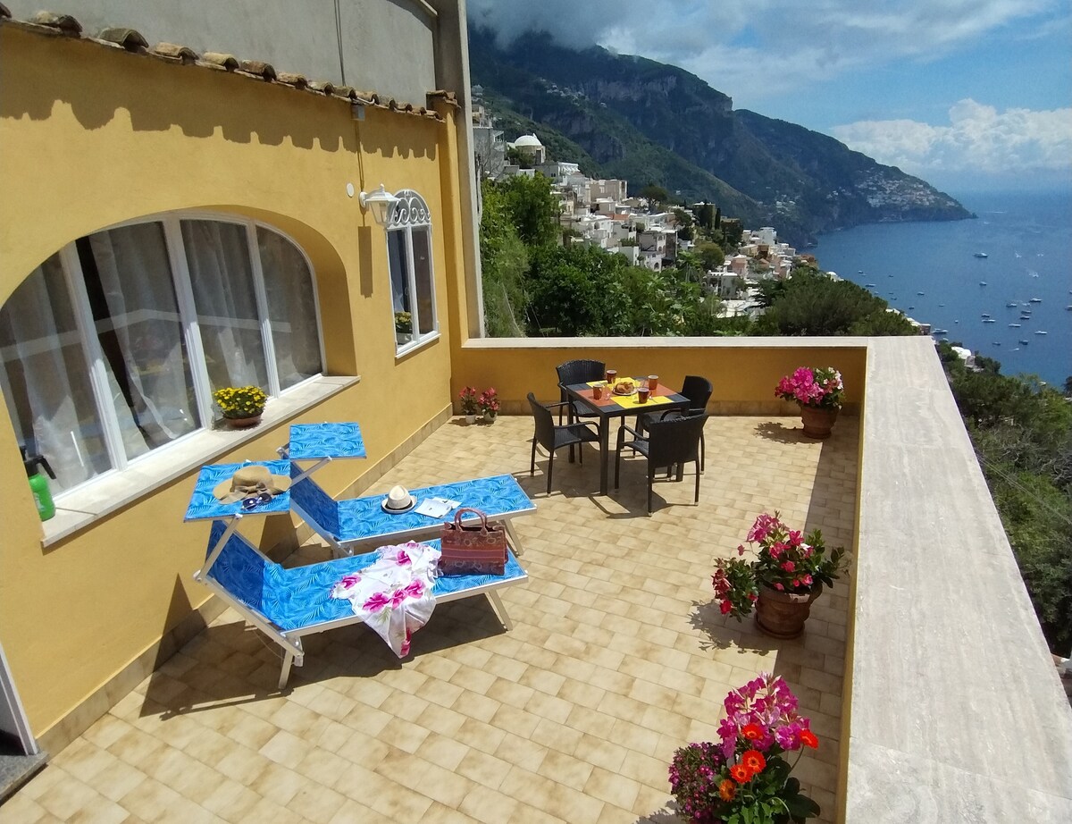 Appartamento completamente arredato. Dotato di 1 camera da letto (matrimoniale), 1 bagno con doccia e lavatrice, ampio soggiorno (con possibilità di 3° letto aggiunto), cucina attrezzata, ampio soggiorno con fantastica vista mare e di Positano. L'appartamento è situato al inizio della scala che porta al SENTIERO DEGLI DEI ed e ‘ accessibile tramite 250 scalini , l appartamento e’ adatto a persone giovani , abituati a fare esercizio fisico!non adatto a persone anziane!