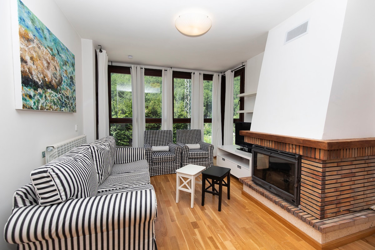 Apartamento en la montaña para disfrutar en cualquier estación del año. Acogedor salón con chimenea y amplio jardín con barbacoa. Muy cerca de las estaciones de Astún y Candanchu. Disfruta de la nieve en invierno y la montaña todo el año con numerosas y preciosas rutas a pié o en bicicleta. A los pies de Collarada, atrevete a subirla. Bonito pueblo con muchas instalaciones y gran oferta de actividades durante todo el año. Visita las cuevas de las Guixas y el ecoparque Juncaral.