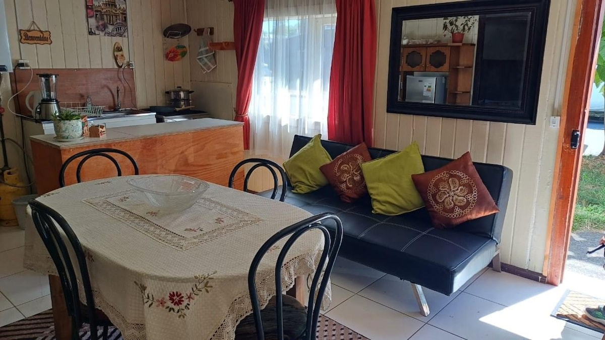 Cabaña Raymac ofrece alojamiento a 5 minutos en auto del centro de Pucón. Tiene capacidad hasta 15 personas, cabaña de dos pisos, con 5 habitaciones y 3 baños, completamente equipada, televisión por cable, zona de quincho exterior. Alberga un amplio jardín, terraza y una cocina americana. También hay un salón compartido. Además cuenta con aparcamiento gratuito para 5 autos. Mi alojamiento es ideal para parejas, familias y grupos grandes.