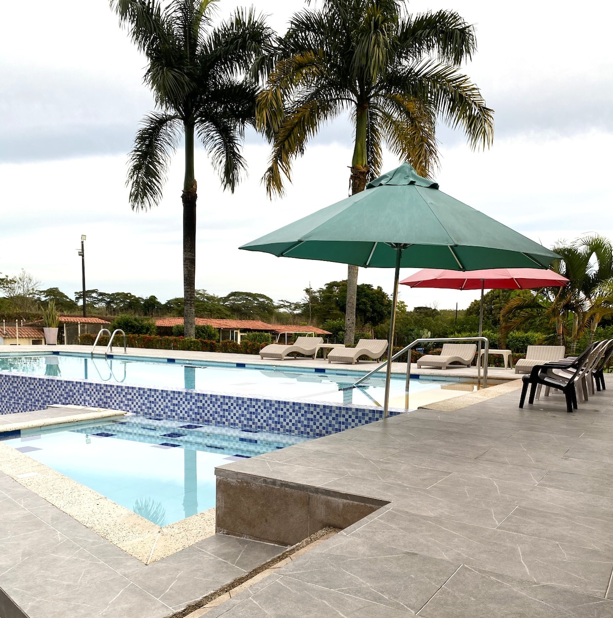 DISFRUTA DE UN ESPACIO PARA ESTRENAR CREADO PARA DESCONECTARTE EN MEDIO DE LA NATURALEZA, CON TODAS LAS COMODIDADES, A SOLO 5 MINUTOS DE LA ZONA URBANA DE VILLAVICENCIO 3 ESPACIOSAS HABITACIONES, TODAS CON BAÑO PRIVADO, Y AIRE ACONDICIONADO ZONA DE ESTUDIO, COCINA ABIERTA, SALA CON TV (ZONAS COMUNES CON VENTILADOR DE TECHO). PARQUEADERO PARA 7 CARROS JARDINES TROPICALES PISCINA CON ZONA PARA NIÑOS , JACUZZI, MINITEJO Y BBQ BAJO PERGOLA FRENTE A LA PISCINA.