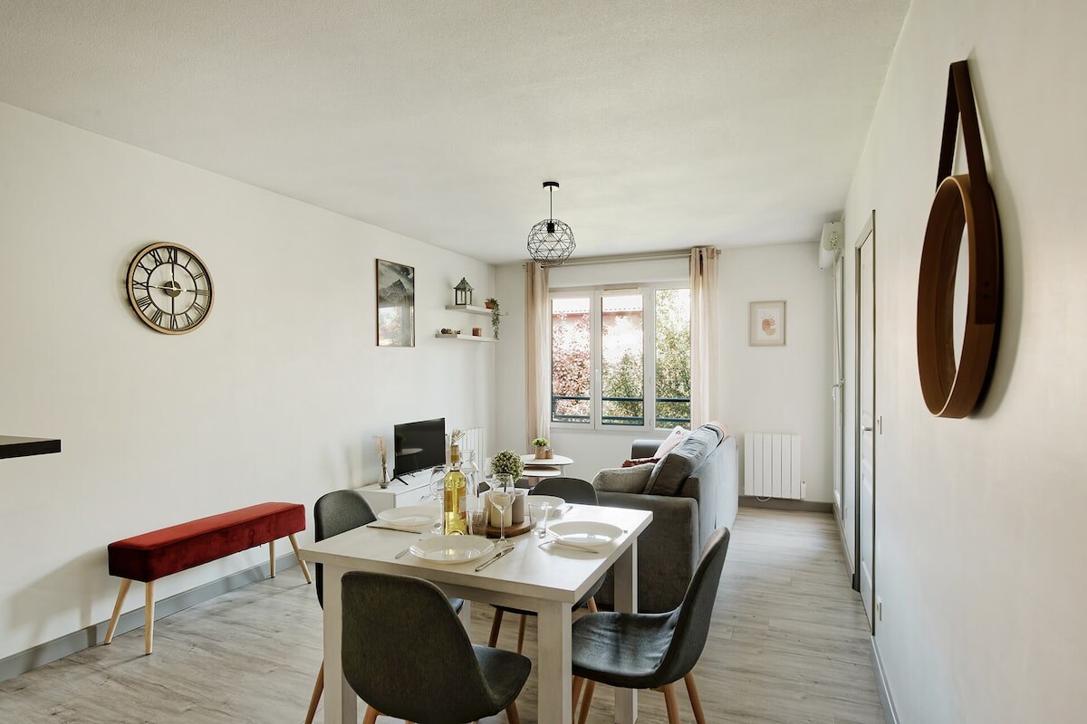Estudio en el centro de la ciudad, a 5 minutos a pie de la estación de tren, aparcamiento gratuito en la estación de tren. Muy buen servicio, muy bien equipado, completamente renovado, en la planta baja, fondo del patio tranquilo y seguro. Capacidad para 2 personas, 1 cama queen size real con colchón de espuma viscoelástica. Apartamento para no fumadores. Llegada entre las 15:00 y las 19:00. Es posible llegar fuera de este horario, pero con un suplemento. Cuarto de baño: ducha italiana de 120 cm x 70 cm Aseo separado. Habitación: Cama de 160 cm x 200 cm, TV de 50 pulgadas Armario empotrado, Ventanas con persianas eléctricas.