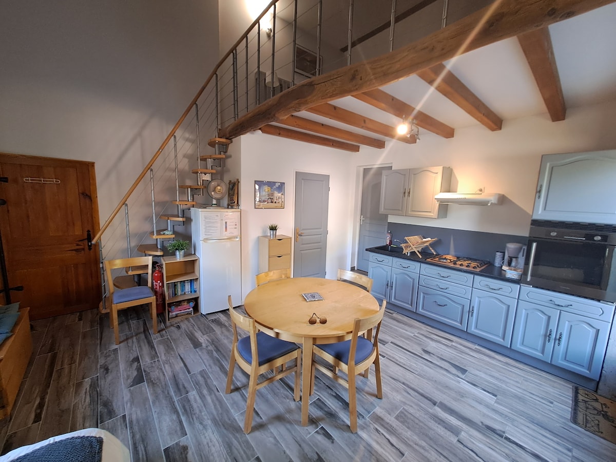 Organizado en dúplex, su bed and breakfast consta de una parte, un dormitorio y un baño contiguo, y por otro lado una sala de estar equipada con una cocina. La decoración combina tradición y modernidad, los suelos de piedra y terracota originales junto a las telas de un artista contemporáneo. Estos dos espacios suman una hermosa superficie de 40 m², están conectados por una magnífica escalera de caracol de hierro forjado que puede ser muy estrecha. Estacionamiento privado con suplemento.