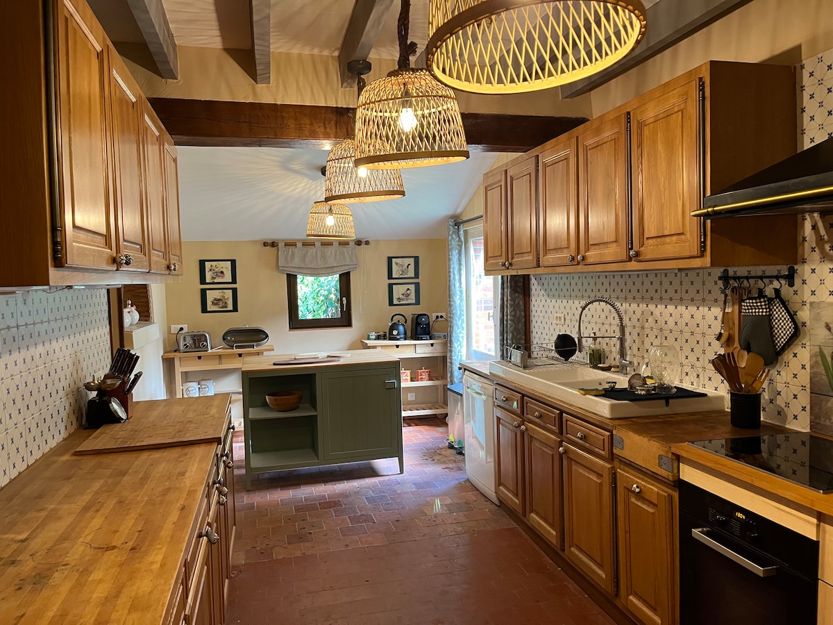 Charming family house just outside the quaint village of Cerdon in Sologne, unique forest setting, by the river of Beuvron. Private pond with fish and a 5x10m heated swimming pool. 100km of cycle routes, including to the beautiful lake Etang de Puits, perfect for water sports. Horse-riding clubs 15min drive away. The house has a fireplace and a large dining table, 5 large double bedrooms (two continuous) for up to 12 people, and 2.5 bathrooms. Extra double bedroom and bathroom in annex house.