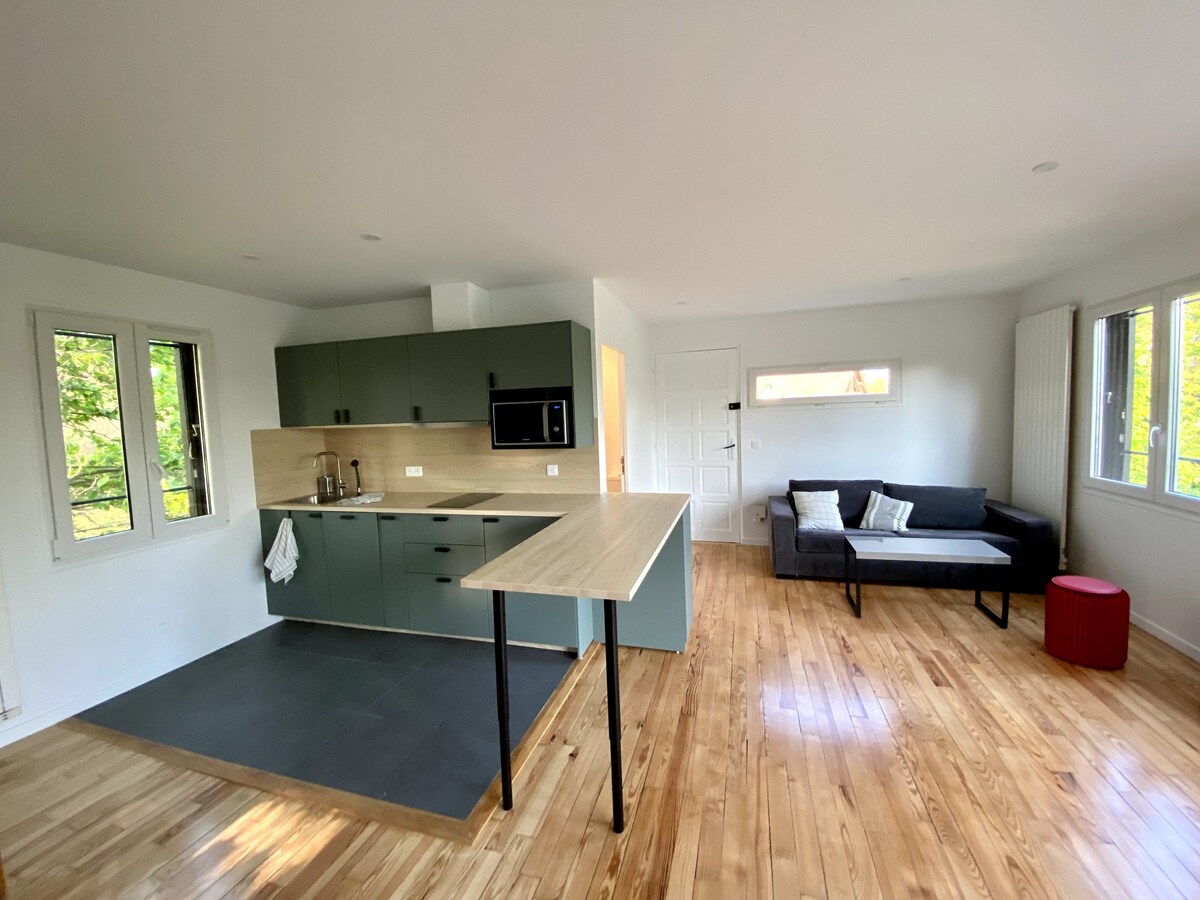 Encantador estudio independiente con chimenea, totalmente renovado, con vistas a un hermoso patio común. Situado entre las rutas de senderismo del bosque de Fontainebleau y el Loing. Una limpieza de calidad está prevista por nuestra propia atención ( incluida en el precio). Para su información, hemos reemplazado el sofá cama (cama diaria) para ofrecer más comodidad a los visitantes. Se pueden alquilar bicicletas (incluidas eléctricas) en casa de nuestro vecino (instrucciones en la última foto del anuncio).
