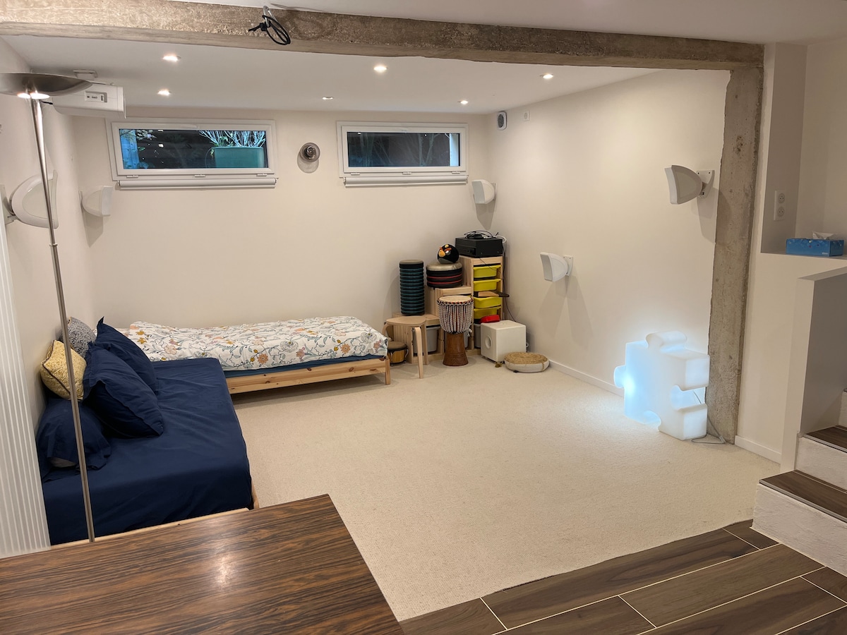 Este estudio (16m2) está situado junto a nuestra casa principal. Su terraza, protegida y orientada al sur, dispone de una mesa y sillones para disfrutar del jardín. Cama simple. Desayuno incluido en el precio. La estación de RER La Hacquinière a 15 minutos a pie. Campus Paris Saclay, CNRS, CEA, CentraleSupélec, etc. está a unos minutos en coche y a 20 min a pie. Tiendas y supermercado cerca (1,5km). Se puede recogerle en la estación de RER si horarios compatibles. Posibilidad de auto check-in.