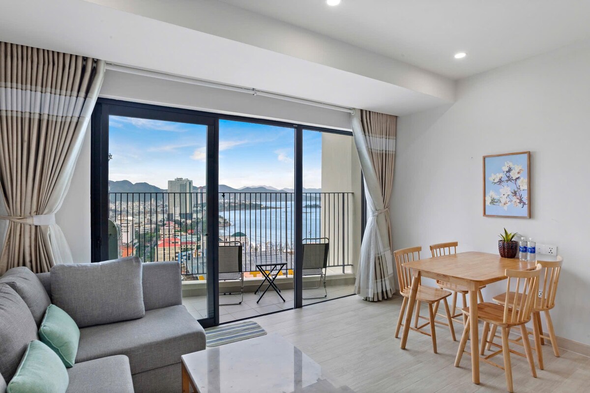 JB Azure Xin chào! Un departamento en el piso 9 con vista panorámica al mar, cada habitación se abre al profundo mar azul. Aquí puedes disfrutar del amanecer desde el sofá y pisar las arenas blancas cruzando la calle. Ubicado dentro de un vibrante nuevo barrio costero, encontrarás productos locales frescos y acogedores restaurantes a excelentes precios, todos rodeados de una cálida comunidad de viajeros internacionales de larga estancia. Un refugio tranquilo que captura el encanto sereno y los colores de la Costa Azul.
